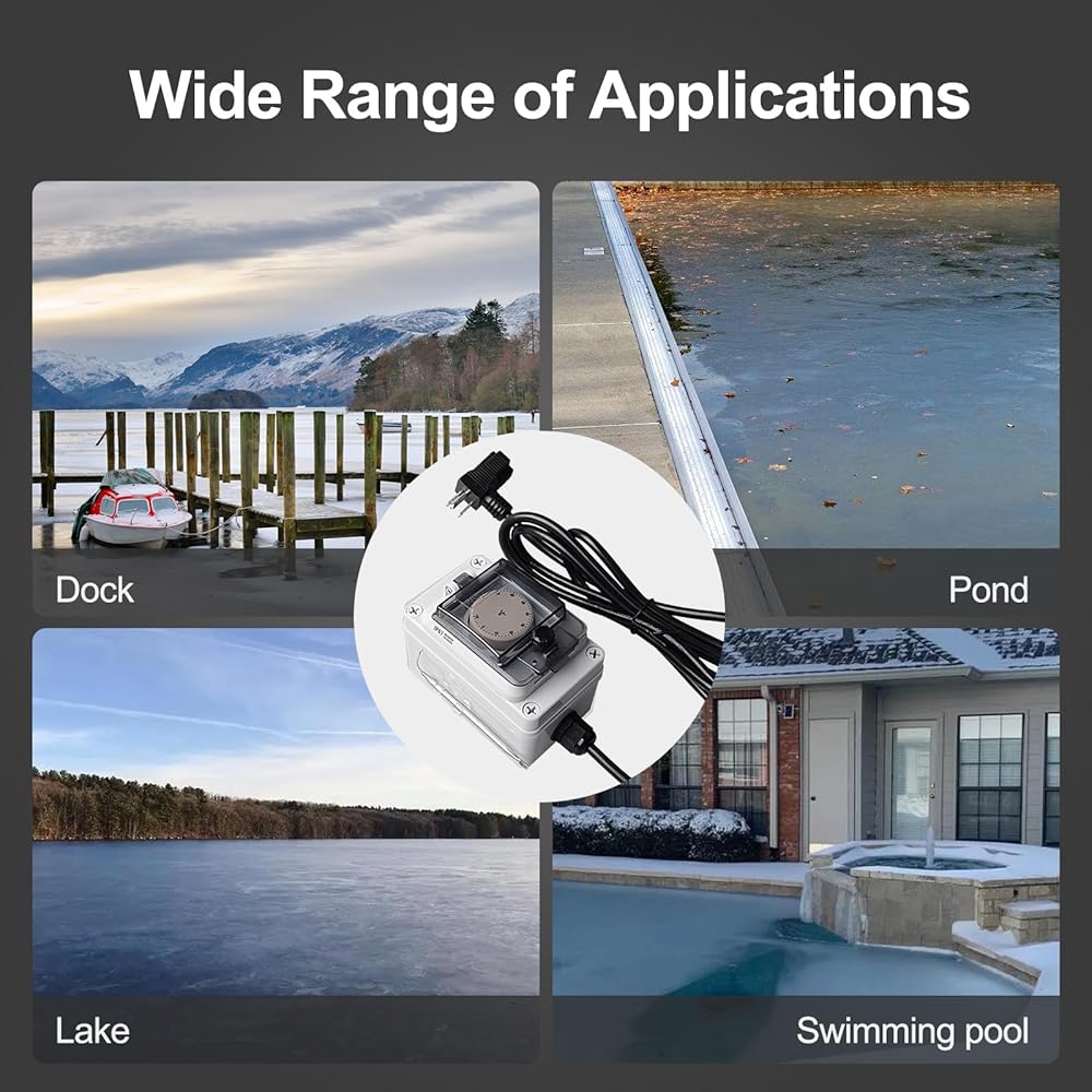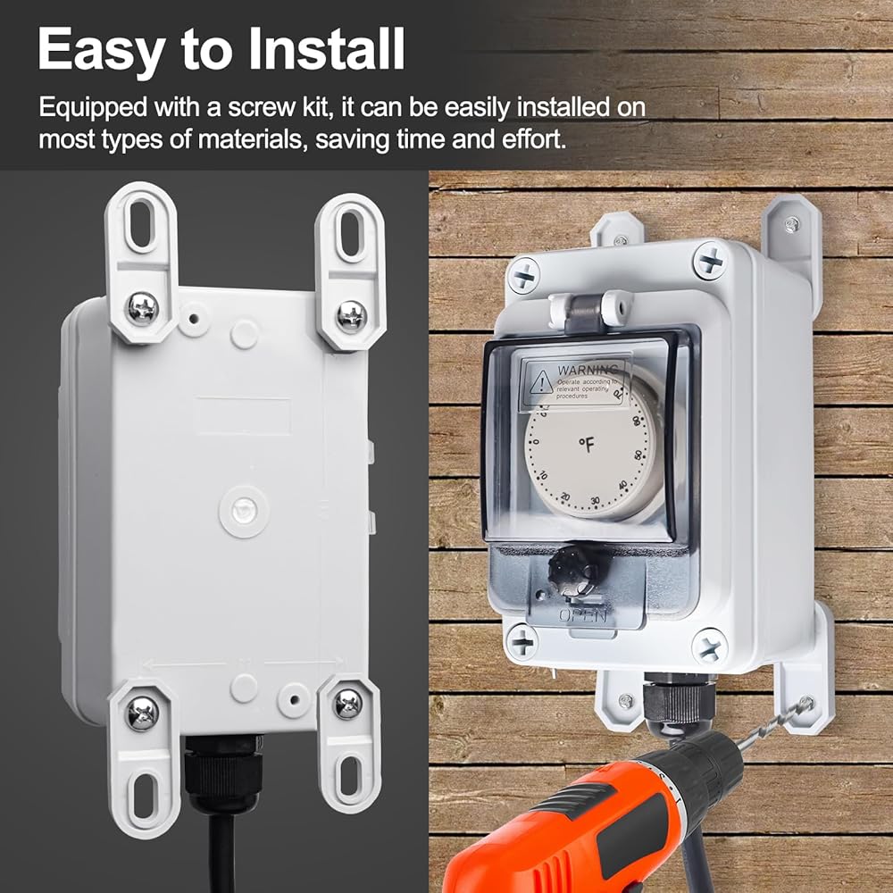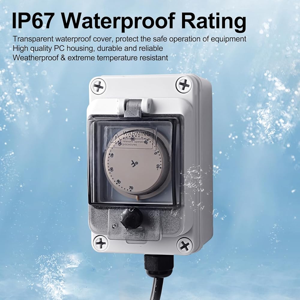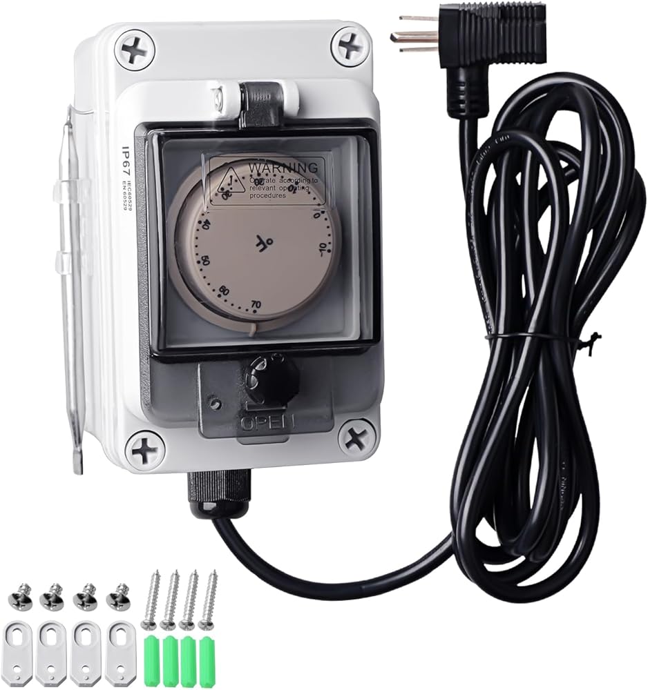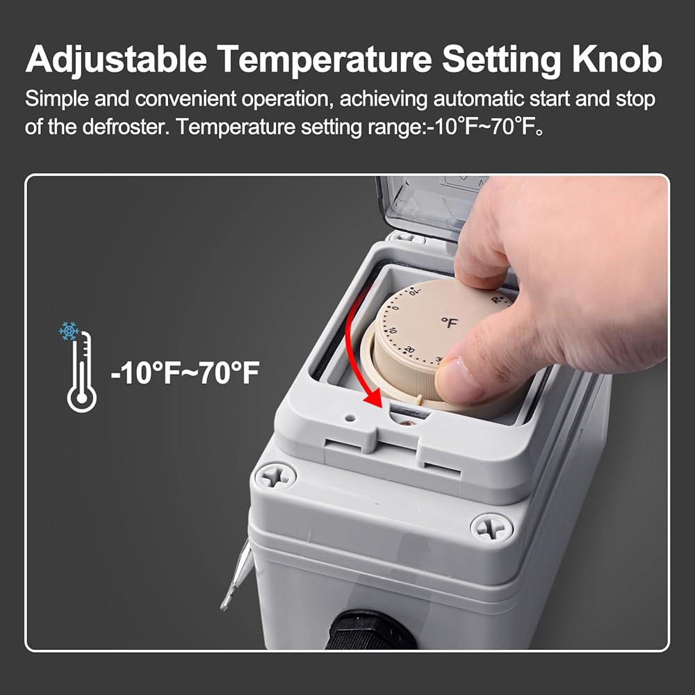 جهاز التحكم في درجة الحرارة Exqutoo IP67 لإزالة الصقيع، صندوق التحكم التلقائي في آلة إزالة الصقيع 16 أمبير 120 فولت، قابس على شكل حقيبة الظهر مع سلك طاقة 10 أقدام، نطاق درجة حرارة قابل للتعديل من -10 درجة فهرنهايت إلى 70 درجة فهرنهايت