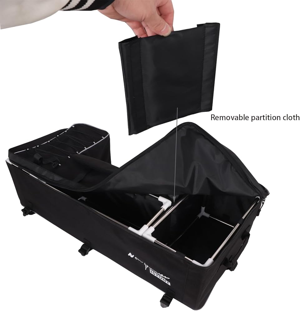 The elastic straps and self-fastening straps of ATV rear rack bag are adjustable for storing a variety of long items and make it easy to be picked up as needed. The three internal shelves not only support the ATV cargo bag but also can be detachable and portable when you don't need to use this bag.