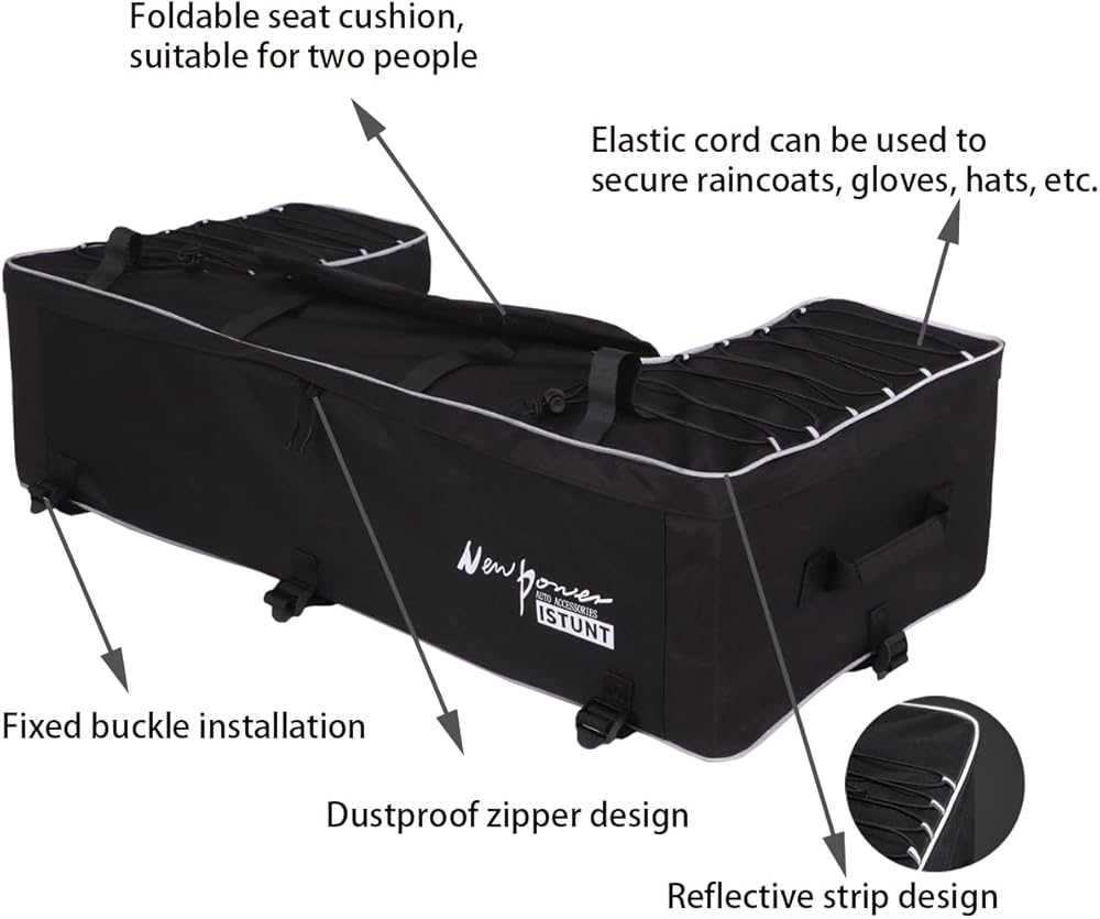 YOUNZJ ATV حقيبة سفلية مبطنة خلفية ATV حقيبة المقعد الخلفي أكياس تخزين إطار رف حقيبة مع وسادة قابلة للإزالة مدمجة كبيرة ذات أربع عجلات حقيبة تروس للركاب الرياضي ذو القوة الغاشمة في القطب الشمالي