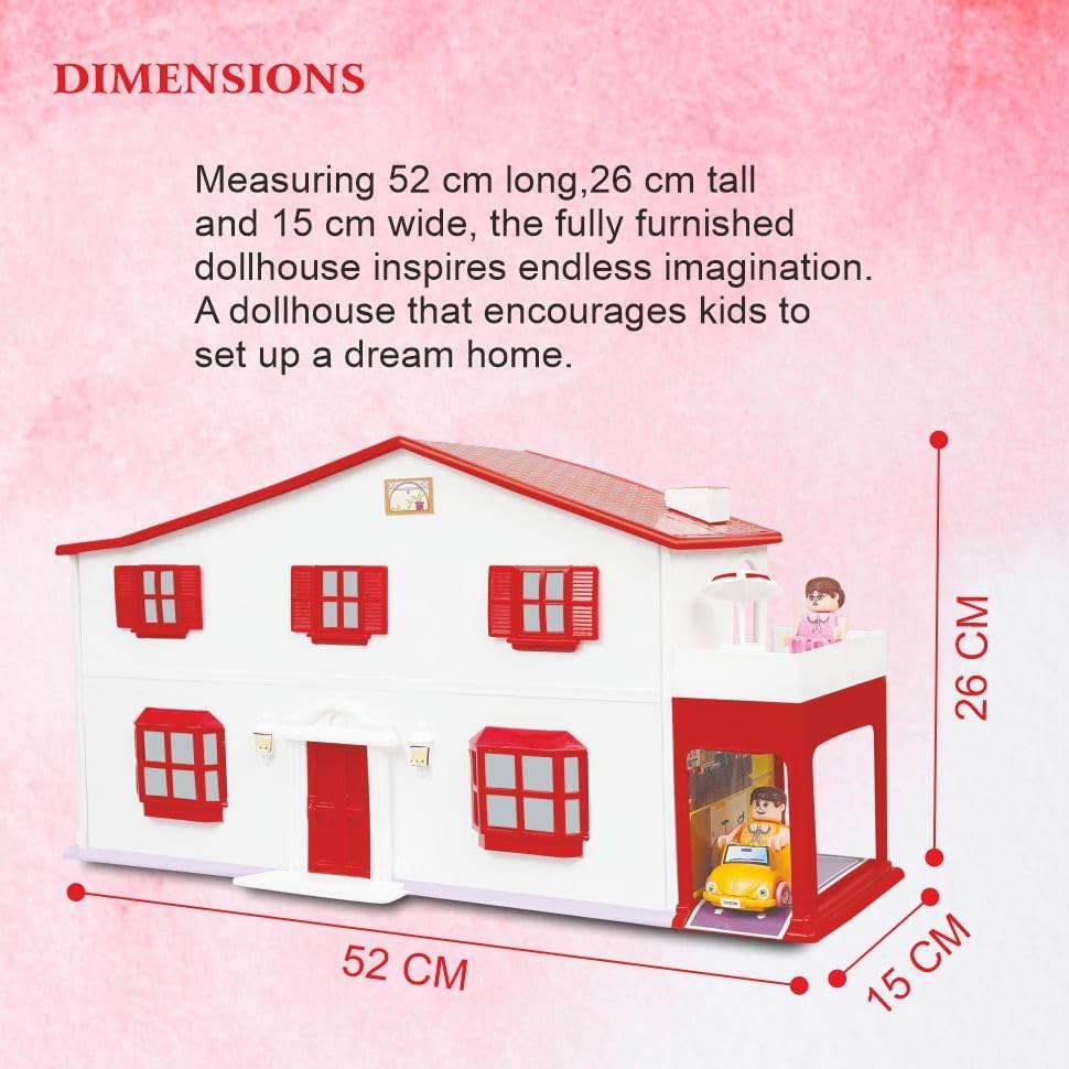 بيت الدمى توي زون (50 قطعة)، مجموعة لعب للبنات، مجموعة لعب الأدوار، بيت الدمية مع الأثاث، مجموعة لعب بيت الدمية للأطفال مع الأثاث، مجموعة اللعب التظاهري (بيت الدمى الفاخر) متعدد الألوان