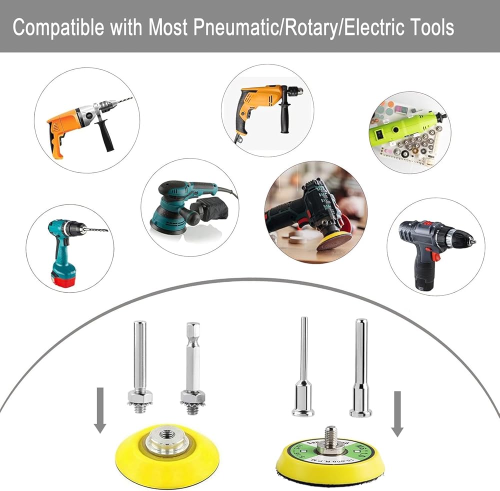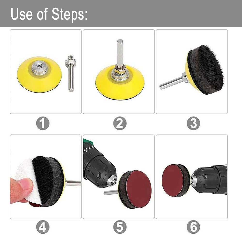 The sanding disc works with grinding or finishing on wood, metal, stone, lacquer surface, leather, plastic, and glass. Wood Furniture finishing, drywall sanding, automotive body polishing, car headlight cleaning, surface rust polishing, almost all the polish work can be used with it. Just choosing the right sandpaper grit for your project.