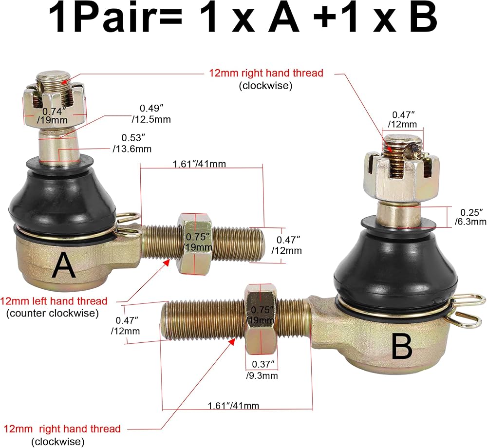 Thread Pitch to Tie Rod: M12X1.25mm. (by milimeter) If you have any questions, please contact us in time