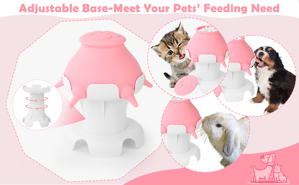 ★قاعدة قابلة للتعديل مطورة - مع القاعدة القابلة للتعديل المطورة، يمكنك استخدام وعاء تغذية حليب الجراء متعدد الحلمات لفترة أطول حيث يمكنه ضبط الارتفاع عن طريق تدوير القاعدة لتلبية احتياجات تغذية حيواناتك الأليفة. ليس عليك تغيير وحدات التغذية بشكل متكرر، فهي مريحة جدًا للاستخدام وتوفير أموالك.