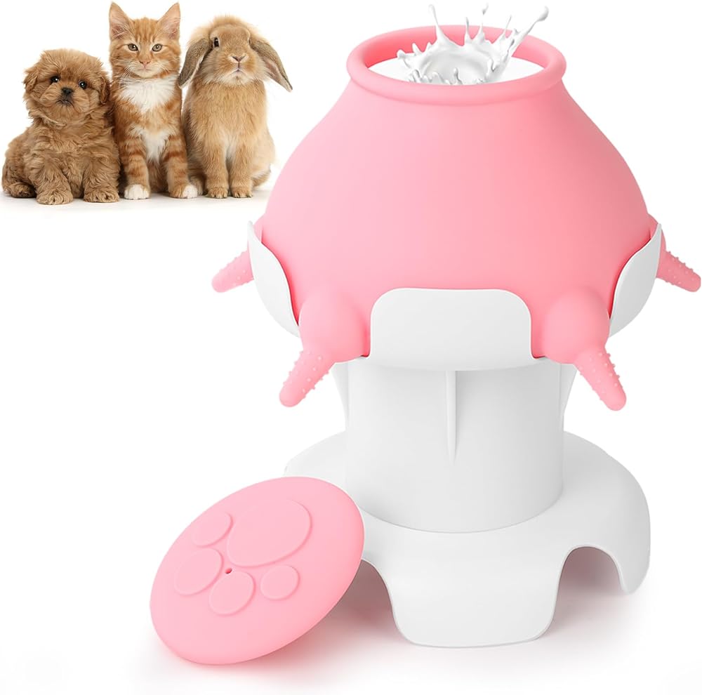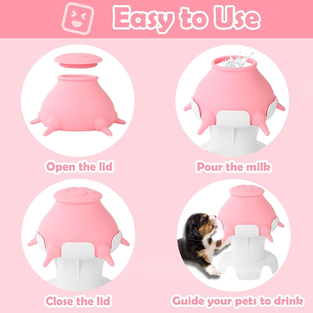 ❤ تصميم حلمة مقلدة - جهاز تغذية الحليب الفقاعي هذا مصنوع من السيليكون الآمن وغير السام الآمن غذائيًا. تصميم الحلمة الاصطناعية يمكن أن يساعد الجراء/القطط/الأرانب على شرب الحليب بسهولة وأمان أكبر. دع وعاء تغذية الحيوانات الأليفة الخاص بنا يحرر يديك!