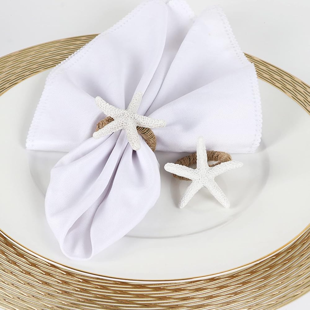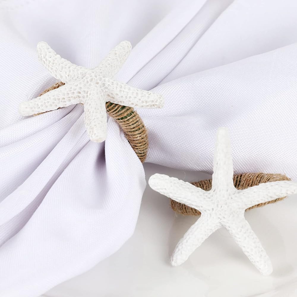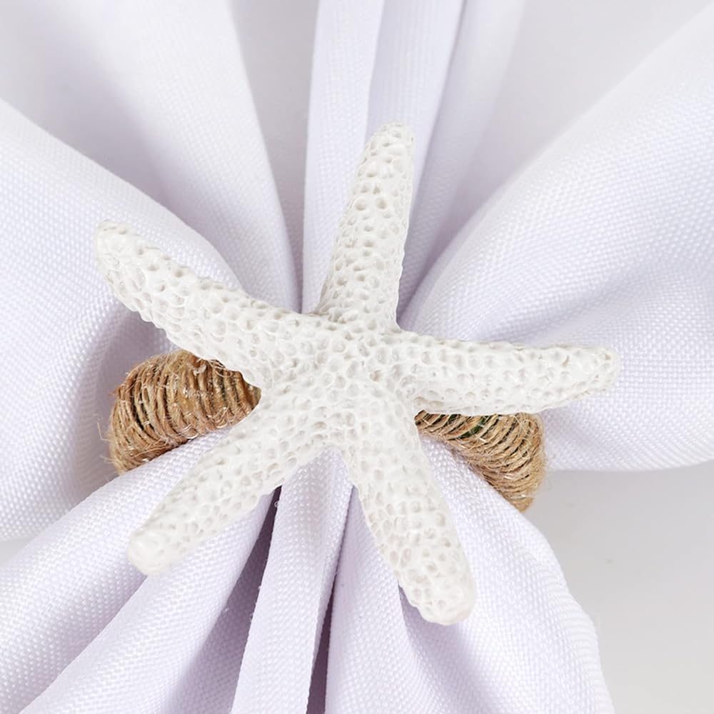 مجموعة Eaferm مكونة من 6 حلقات مناديل على شكل نجمة البحر، وحوامل مناديل على شكل نجمة البحر البيضاء للحرف اليدوية وحفلات العشاء وديكور طاولة الشاطئ والاستخدام اليومي وديكور المنزل