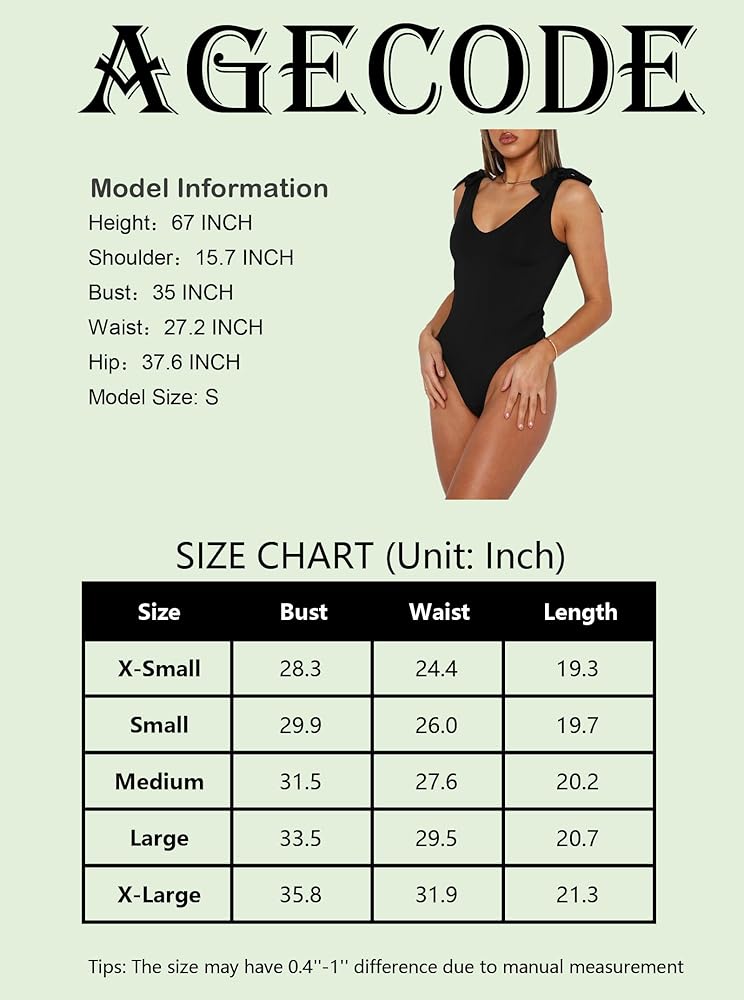 AGECODE Women's V Neck Bodysuit Tie Shoulder Sleeveless Tank Top Body Suit Going Out Tops