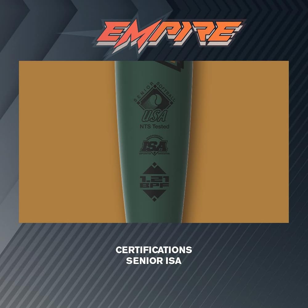 Lay claim to your kingdom with the new 2022 Easton Empire Loaded bat! Expertly designed for use in senior slowpitch games, you'll fall in love with it right out of the wrapper. You'll get age-defying pop from your swing thanks to the Triple Wall Barrel, an innovative design that packs explosive pop into this hit stick. In addition, you can be sure the sweet spot will deliver monster moonshots, thanks to its 12.75-inch barrel and loaded swing weight. Just ask pro slowpitch slugger Ronnie Salcedo, who helped design this bat to meet pro performance standards. The 2022 Easton Empire Loaded bat will be the envy of your senior league softball tournaments and games every time you step to the plate. Get yours today!