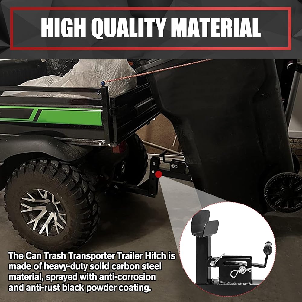 • [مادة عالية الجودة] مصنوعة من الفولاذ الكربوني الصلب عالي التحمل، وصلة مقطورة نقل سلة المهملات القابلة للتعديل مطلية بمسحوق أسود مضاد للتآكل ومضاد للصدأ، مما يضمن المتانة في الظروف الجوية القاسية.
