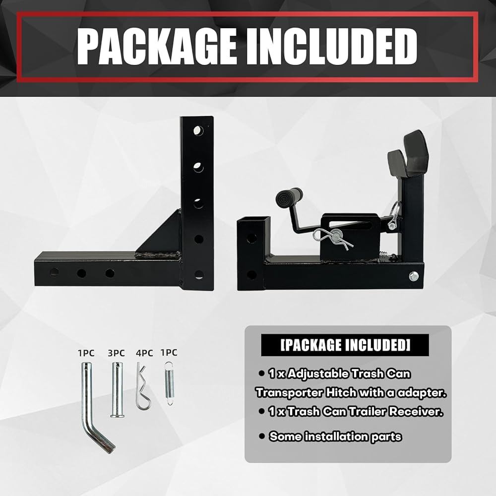 • [تشمل العبوة] 1 × رف سحب مقطورة سلة المهملات مع محول، 1 × مستقبل مقطورة سلة المهملات والأجهزة الأخرى.