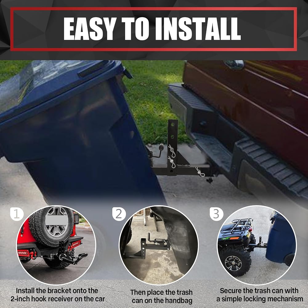 • [سهلة التركيب] ما عليك سوى تثبيت الدعامة على جهاز استقبال الخطاف مقاس 2 بوصة على سيارتك. ضع سلة المهملات على الحقيبة وقم بتثبيتها بآلية قفل بسيطة، ورفع سلة المهملات عن الأرض من أجل النقل.