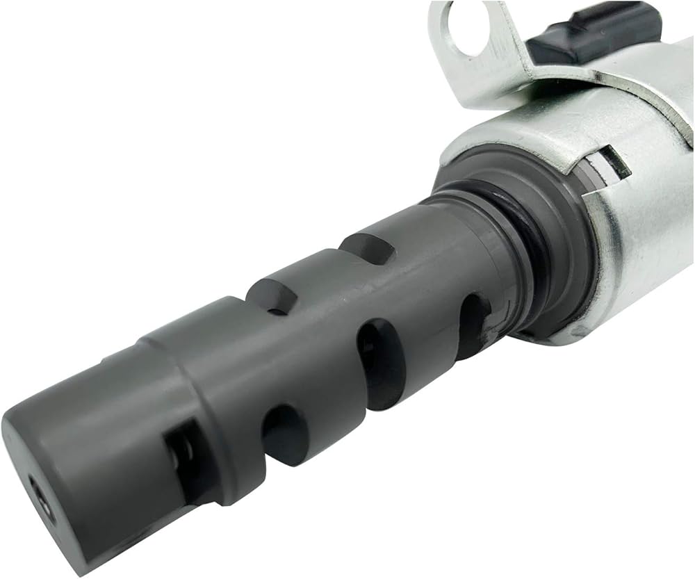 The VVT Solenoid improves gas mileage by controlling the amount of intake and exhaust valve overlap.