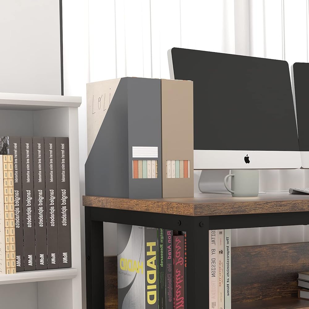 مكتب كمبيوتر TOPSKY مع رف كتب/غطاء كابل بفتحة معدنية بسمك 1.18 بوصة (55 بوصة، رمادي إسبرسو)