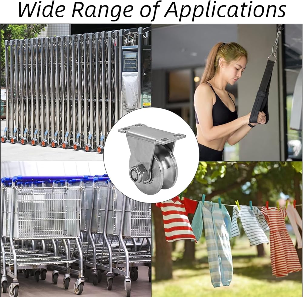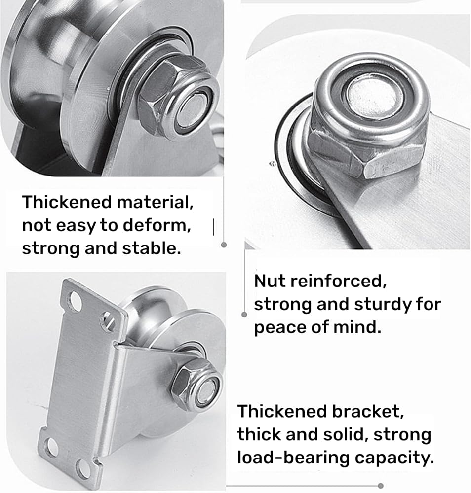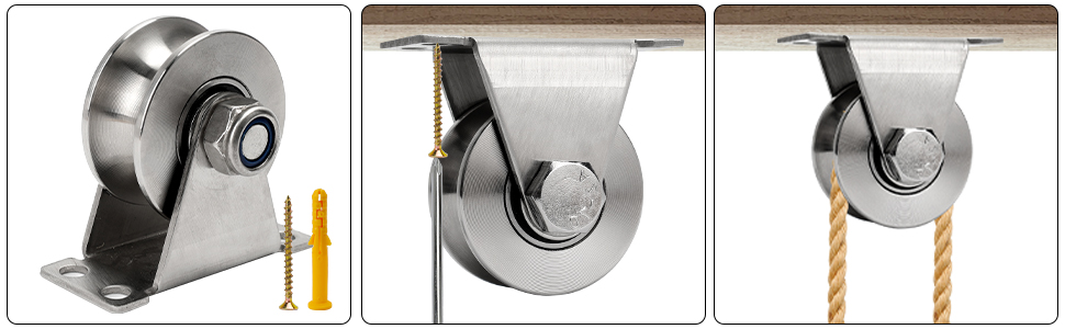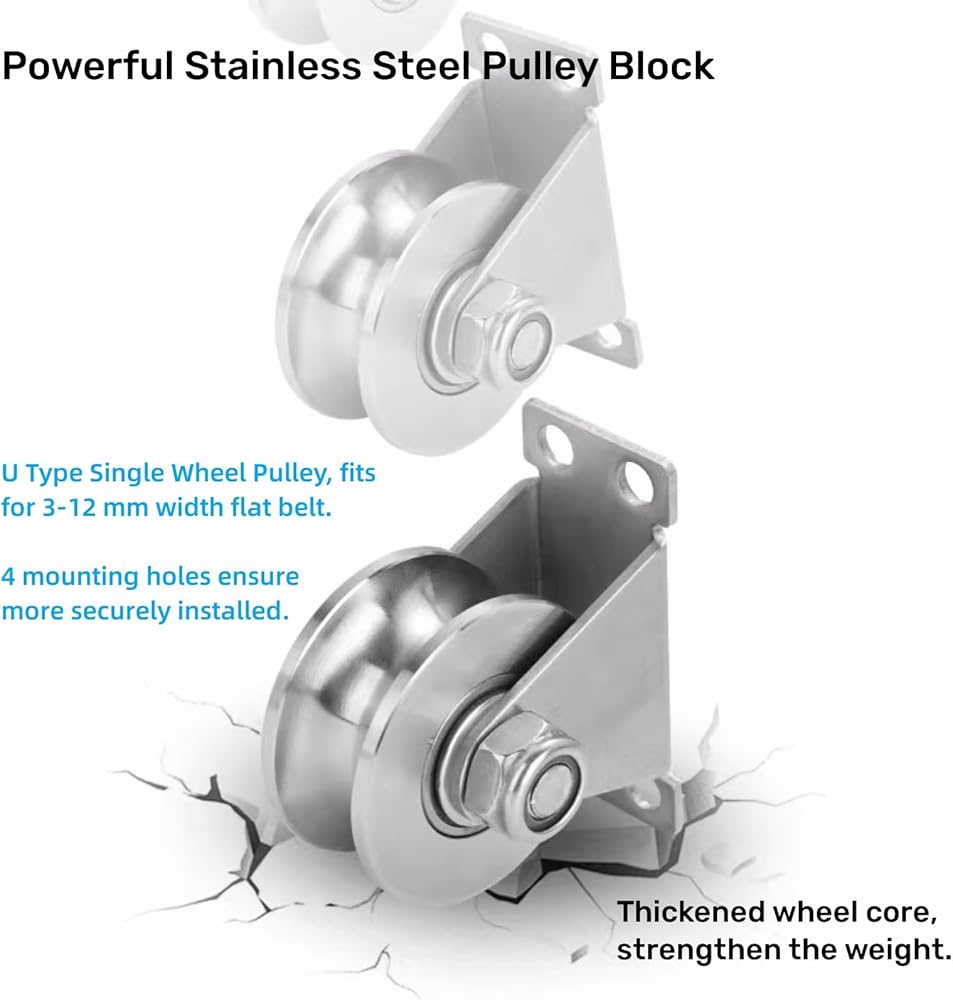 【كتلة بكرة قوية】تحتوي عجلة البكرة على 4 فتحات تثبيت لتثبيت المسمار الآمن الذي يمكن أن يتحمل ما يصل إلى 800 رطل، مما يجعلها مثالية للآلات الصغيرة أو التركيبات المنزلية.