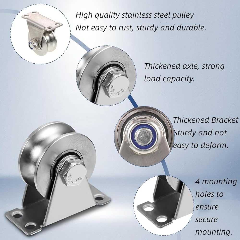 【الخامة: عجلة البكرة مصنوعة من الفولاذ المقاوم للصدأ 304 عالي الجودة مع ملمس ناعم. الفولاذ المقاوم للصدأ يجعلها مقاومة للصدأ والتآكل للاستخدام طويل الأمد. مثالية للياقة البدنية المنزلية، وجر الحبال السلكية، وملحقات نظام بكرة الصالة الرياضية المنزلية، والمسارات المقلوبة، ومكعبات الرفع، ومصاعد السلم، ومعدات اللياقة البدنية، والأبواب المنزلقة ذات المصراع الدوار وغيرها من الوظائف الخارجية.
