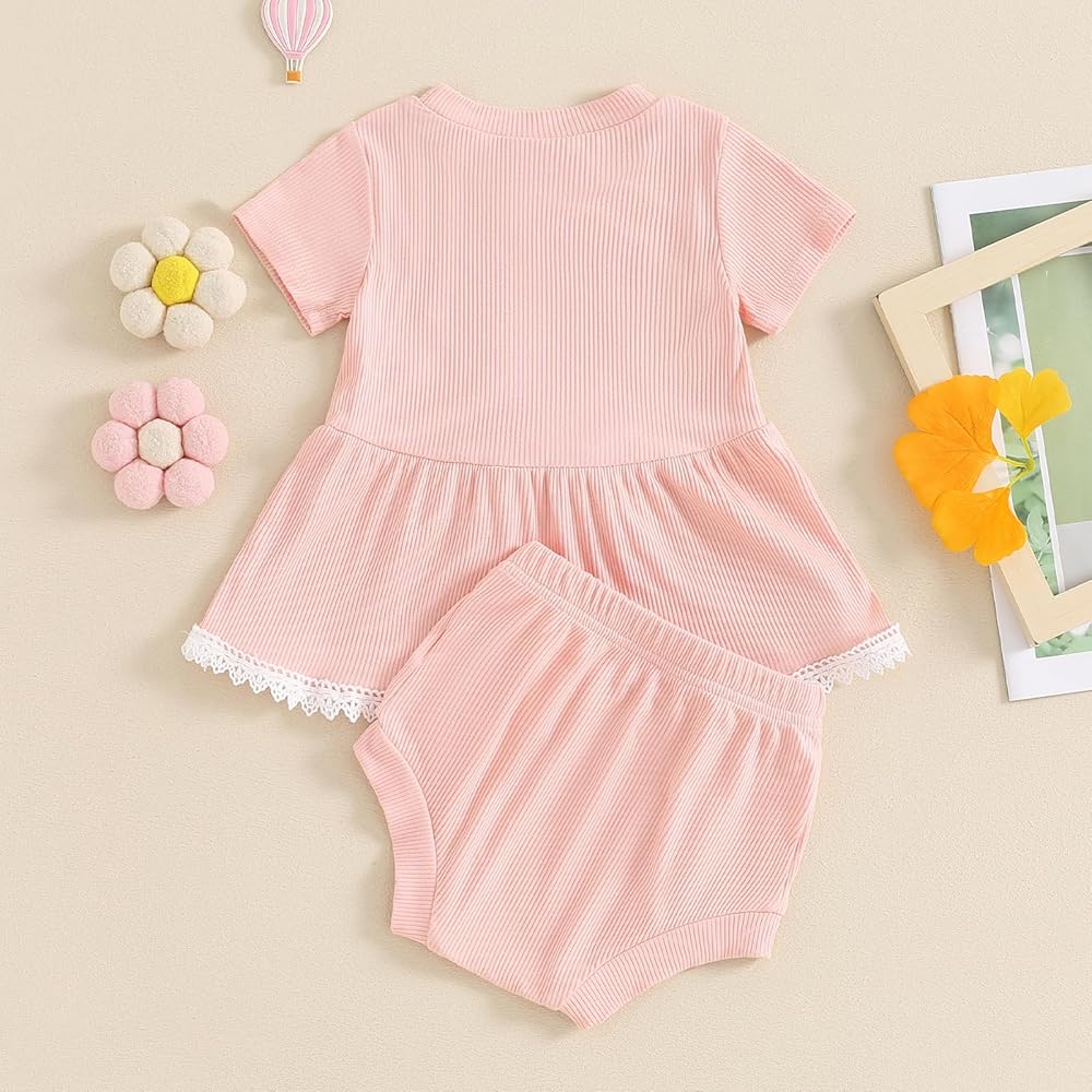 تشمل العبوة: 1 × قمصان بأكمام قصيرة + 1 × شورت بلومرز. ملابس حديثي الولادة للفتيات الصغيرات، طقم شورتات للفتيات الصغيرات من قطعتين، ملابس للفتيات الرضيعات، مستلزمات الأطفال حديثي الولادة. أفضل الهدايا لابنتك أو ابنة أختك أو حفيدتك أو طفلة صديقتك. يستحق الحصول عليه!