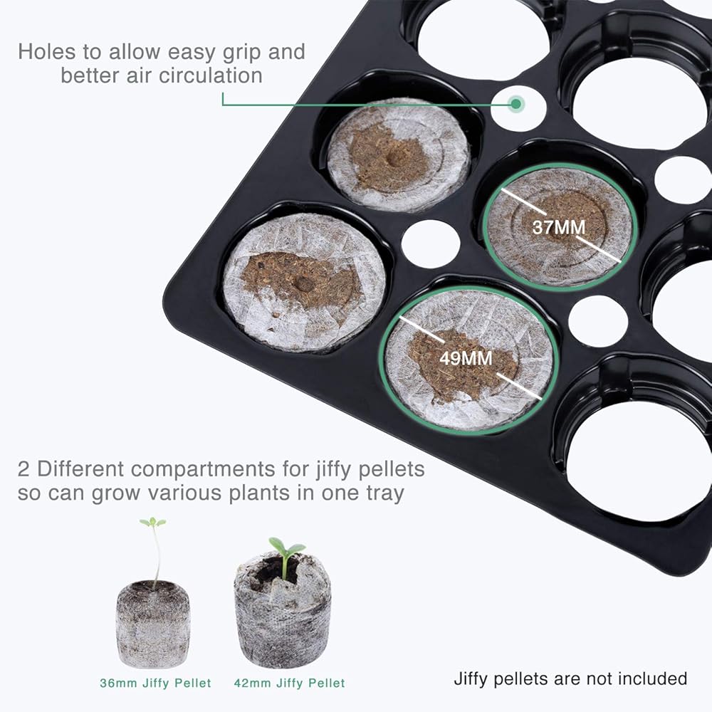 ✔ يبلغ حجم كل خلية 3.7 سم × 3.7 سم مربعة للبذور الصغيرة والكبيرة والشتلات الصغيرة، بعمق 5.5 سم لنمو الجذور وثقوب للتصريف.