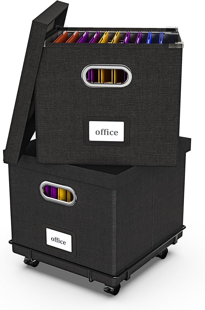 [جودة عالية]: صندوق تخزين الملفات مصنوع من نسيج عالي الكثافة وألواح MDF، وغطاء الصندوق مصنوع من الخشب، والذي يمكنه تحمل سعة أقل من 50 كجم. يمكن تكديسها دون الإضرار بملفاتك. الصينية ودعامة المجلد مصنوعة من الفولاذ، وهو متين وقوي.