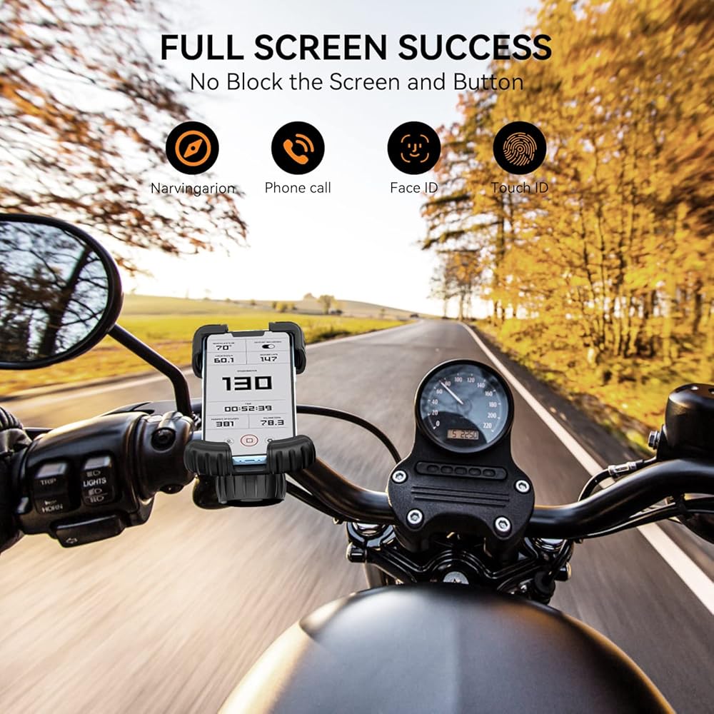 تعديل 360 درجة ونجاح الشاشة الكاملة - يتيح لك تصميم الكرة العالمي ضبط هاتفك على نموذج أفقي أو رأسي. يمكنك وضع هاتفك في الزاوية المثالية للاستمتاع بركوب أكثر استرخاءً. يمكّنك التصميم ذو الوجه المفتوح من الرد على المكالمة وعرض نظام تحديد المواقع العالمي (GPS) ومراقبة متوسط السرعة بحرية أثناء الركوب. مريحة وآمنة لبدء رحلة الركوب الخاصة بك.