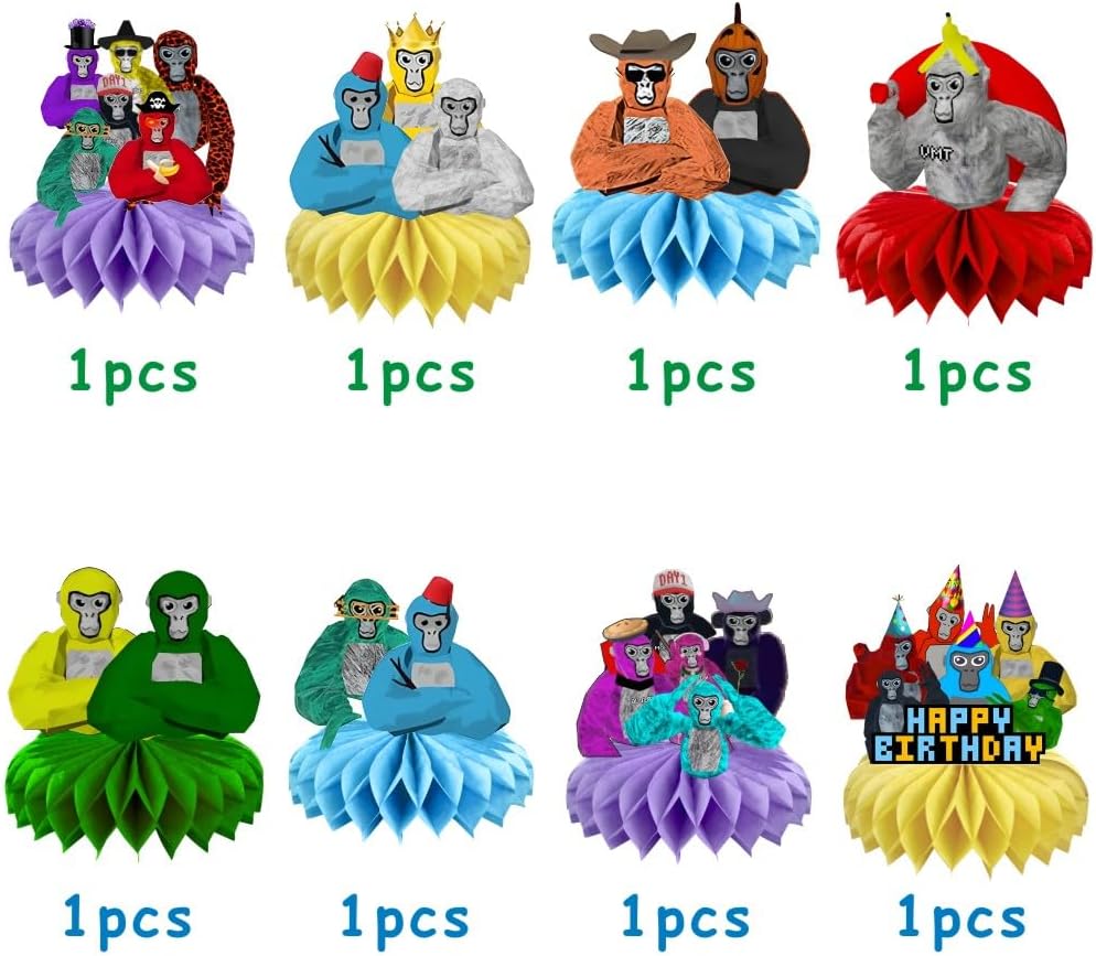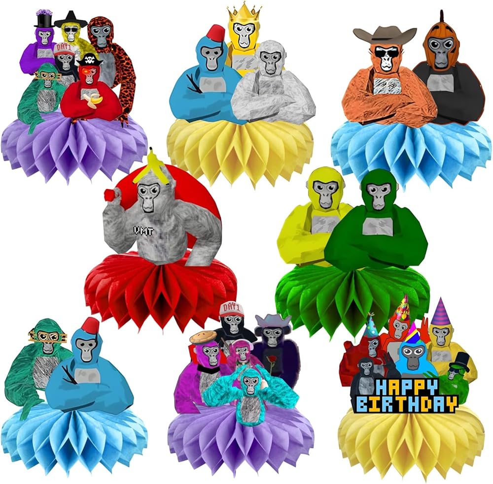 8Pcs Gorilla Tag Honeycomb Table Centerpiece Birthday Party Supplies Table Decorations for Kids Party Decorations