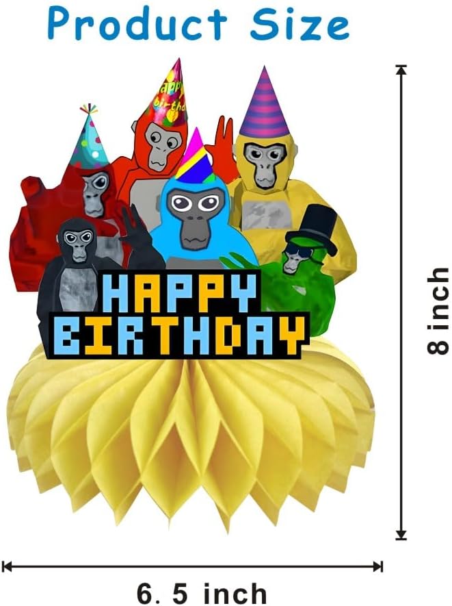 Gorilla Tag honeycomb centerpiecesdecorations are suitable for children's parties, family gatherings, school recreational activities, or other decorations. Not only as a table decoration but also as a photo booth propns.