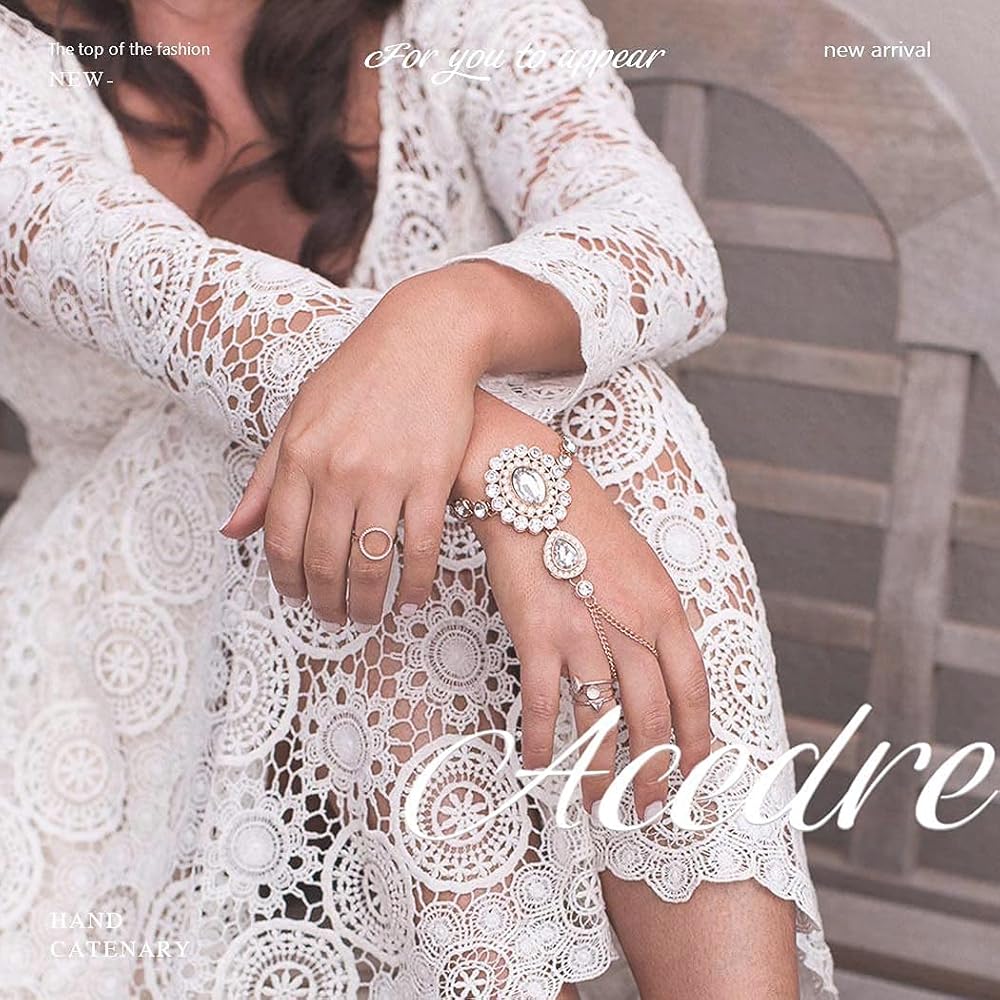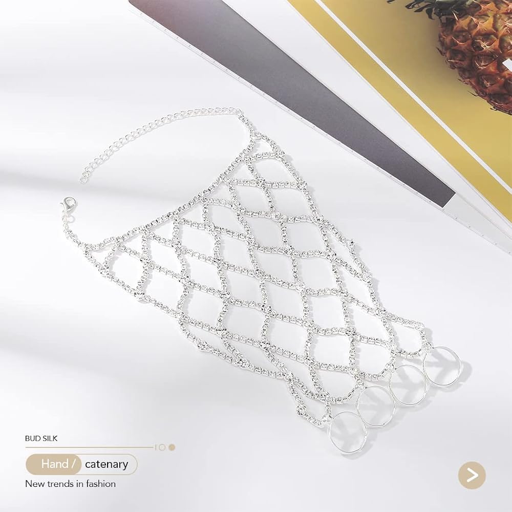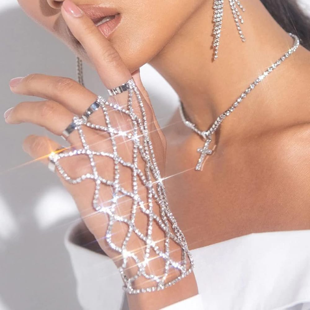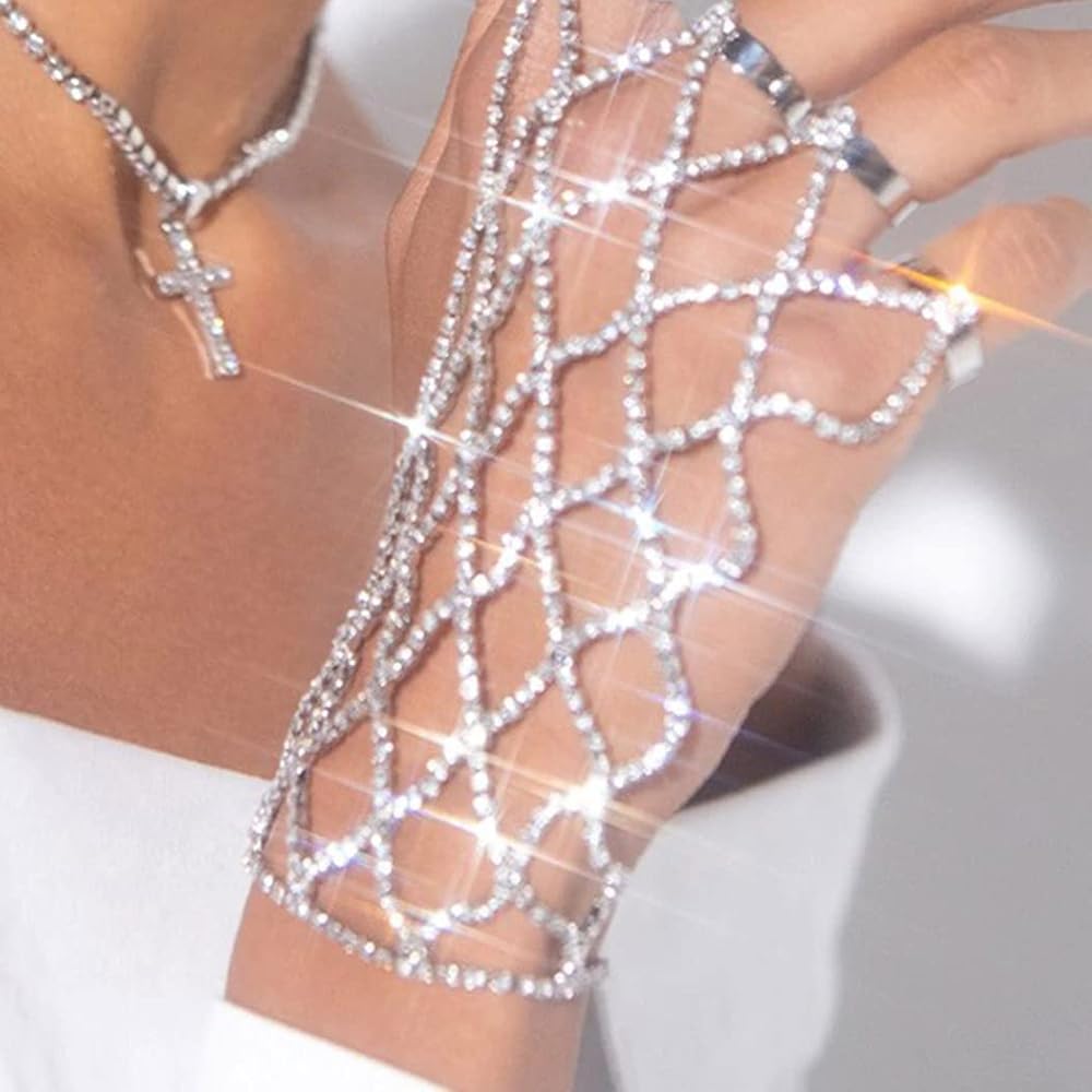 ACEDRE حجر الراين سوار خاتم الفضة سباركلي كريستال فنجر سلسلة أساور حفلة موسيقية اليد تسخير الإسورة للنساء