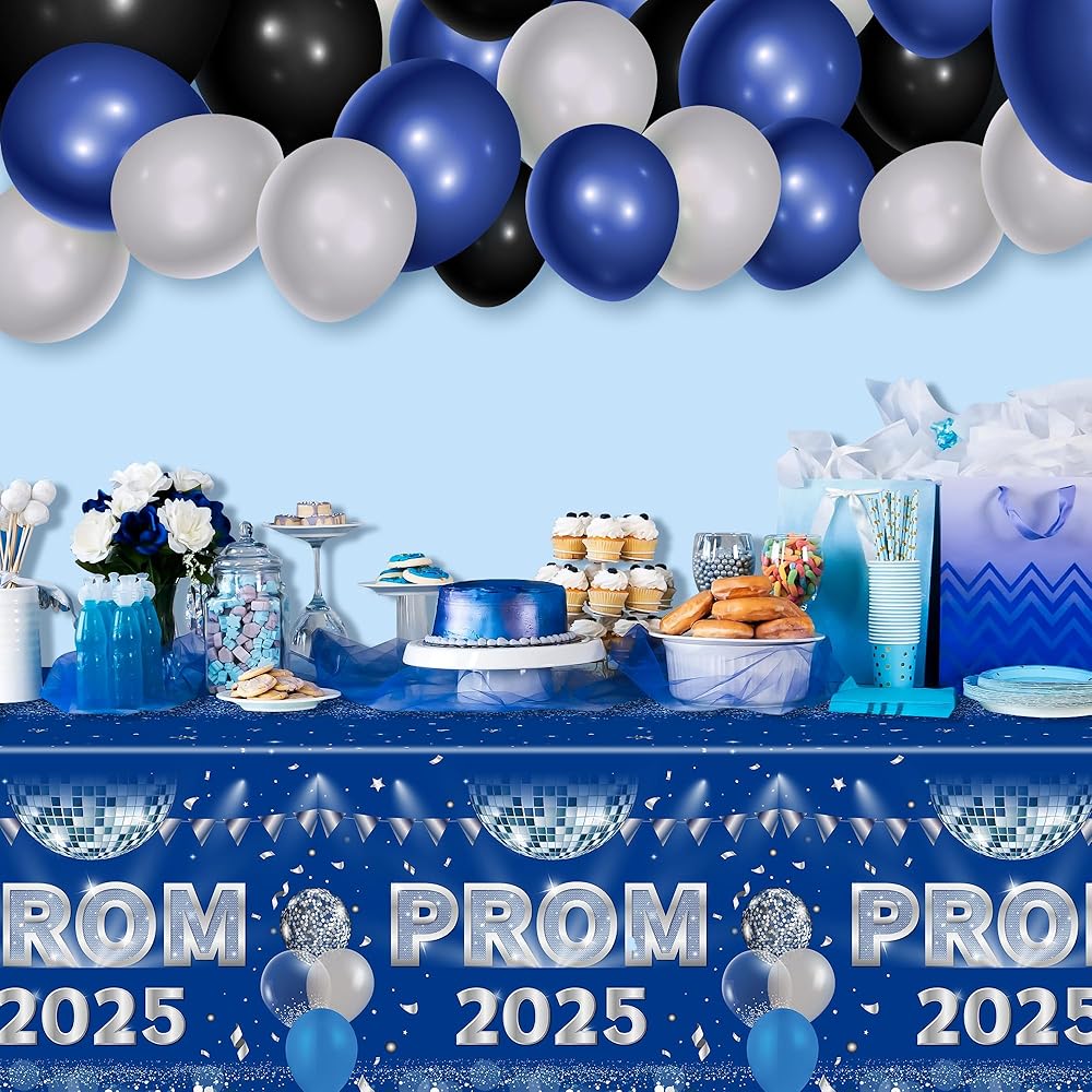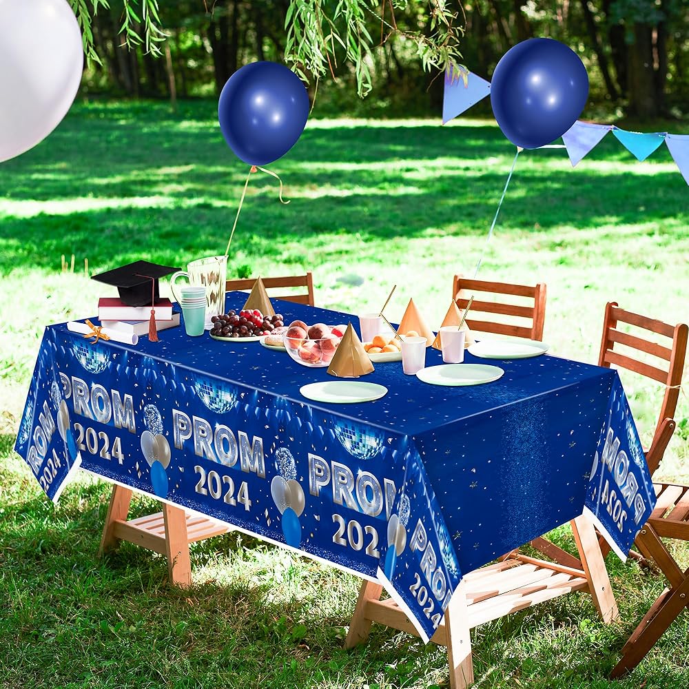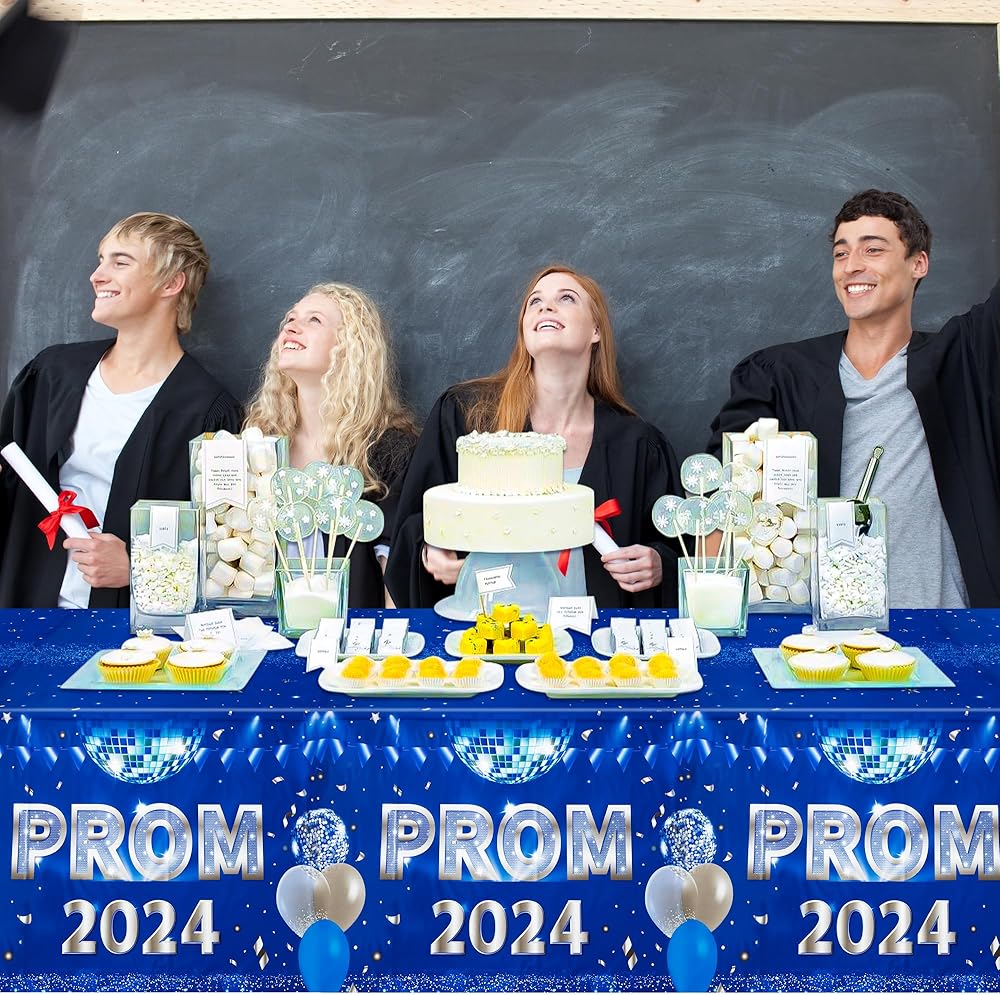 [مفرش طاولة لحفلات التخرج] مفرش المائدة هو 2024 موضوع التخرج للحفلات الراقصة باللون الأزرق الداكن والفضي، ويمكن استخدامه لتزيين طاولة حفل التخرج، وإضافة بريق إلى حفلتك.