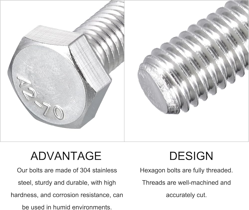 • [4]: ADVANTAGE - Our bolts are made of 304 stainless steel, which is superior to regular steel and any zinc-plated fasteners, sturdy and durable, with high hardness, and corrosion resistance, and can be used in humid environments.