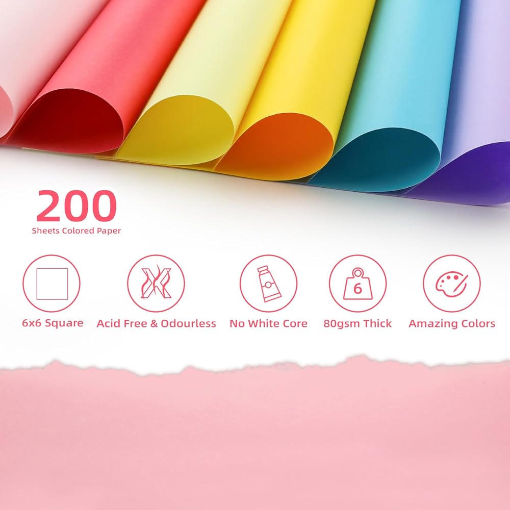 • VARIETY COLOR PAPER PACK: 200 Sheets Bulk Color Paper Enables You To Make Origami Project, Card Making, Scrap-Booking, Diy Craft. Vivid Color Scheme Includes All Colors In One Pack,Yellows& Oranges,Blues& Greens,Reds,Pinks& Purples,Black & Grey...