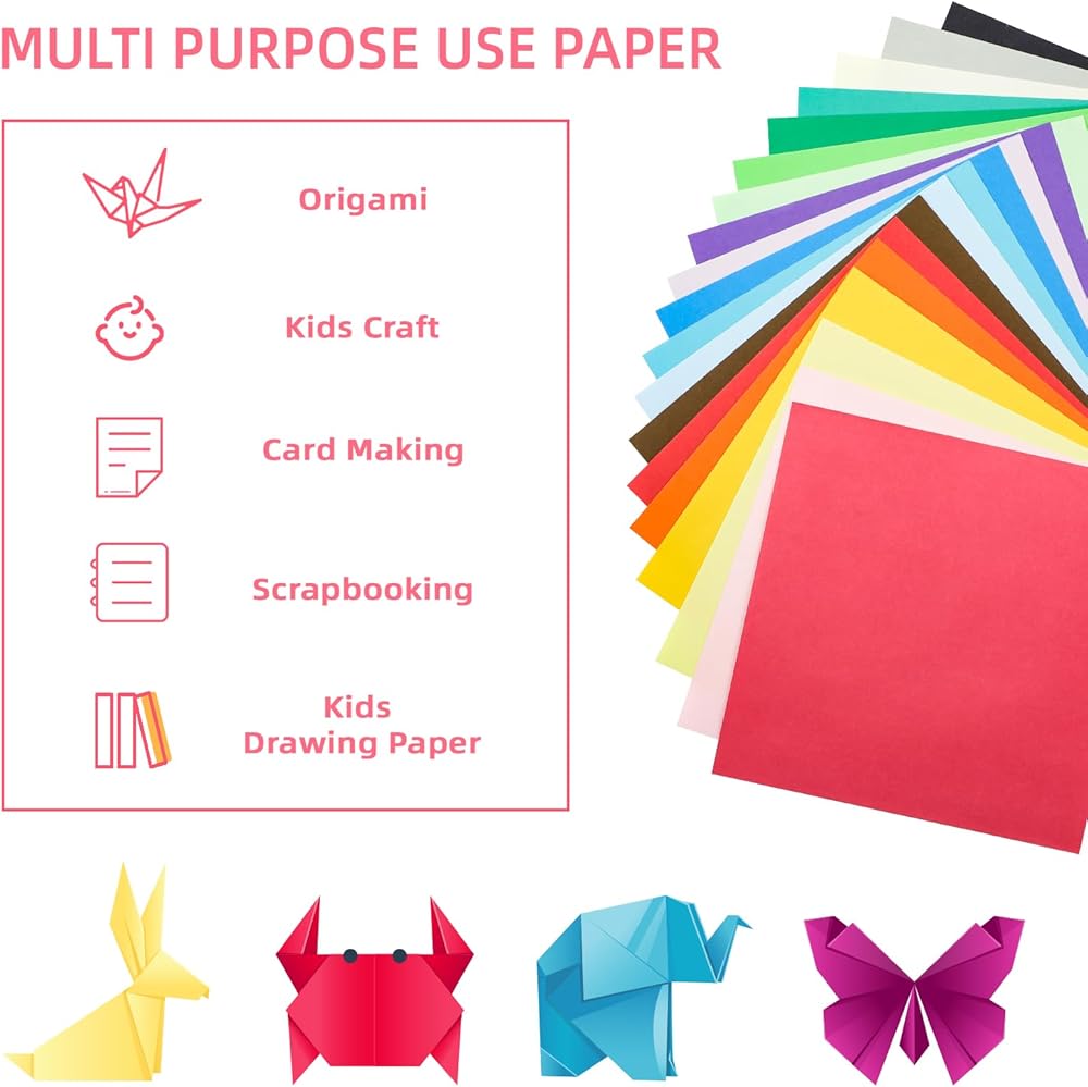 • NO WHITE CORE: No White Color Showing after Cutting and Folding. The Thickness Holds Creases Better Than Regular Thin Paper. Will Not Break Easily Even After Many Folds.15X15cm Size is Suitable for Children Small Hands to Grip and Good for Color Recognition Training.