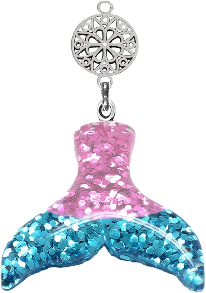 ذيل حورية البحر اللامع باللونين الأزرق والوردي وسحب مروحة فضية ساحرة أو سحب خفيف مصنوع يدويًا بواسطة Mossy Cabin مع سلسلة ومشبك مقاس 12 بوصة. ملحق مروحة السقف.