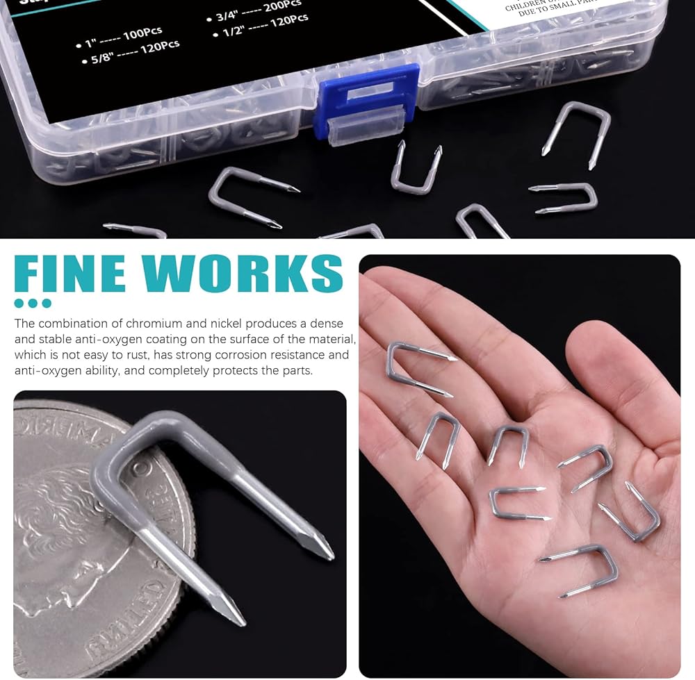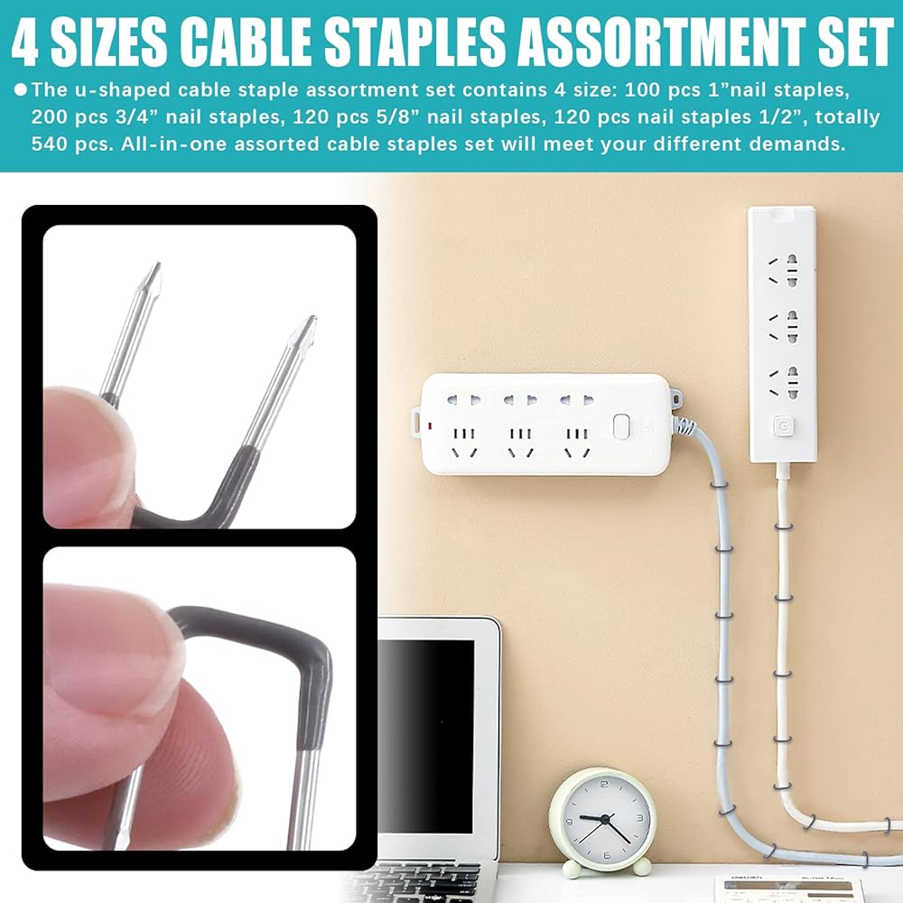 Cimeton 540Pcs 4 Sizes Insulated U Staple Nail Set, Metal Cable Staple for Fixing Wires and Cables