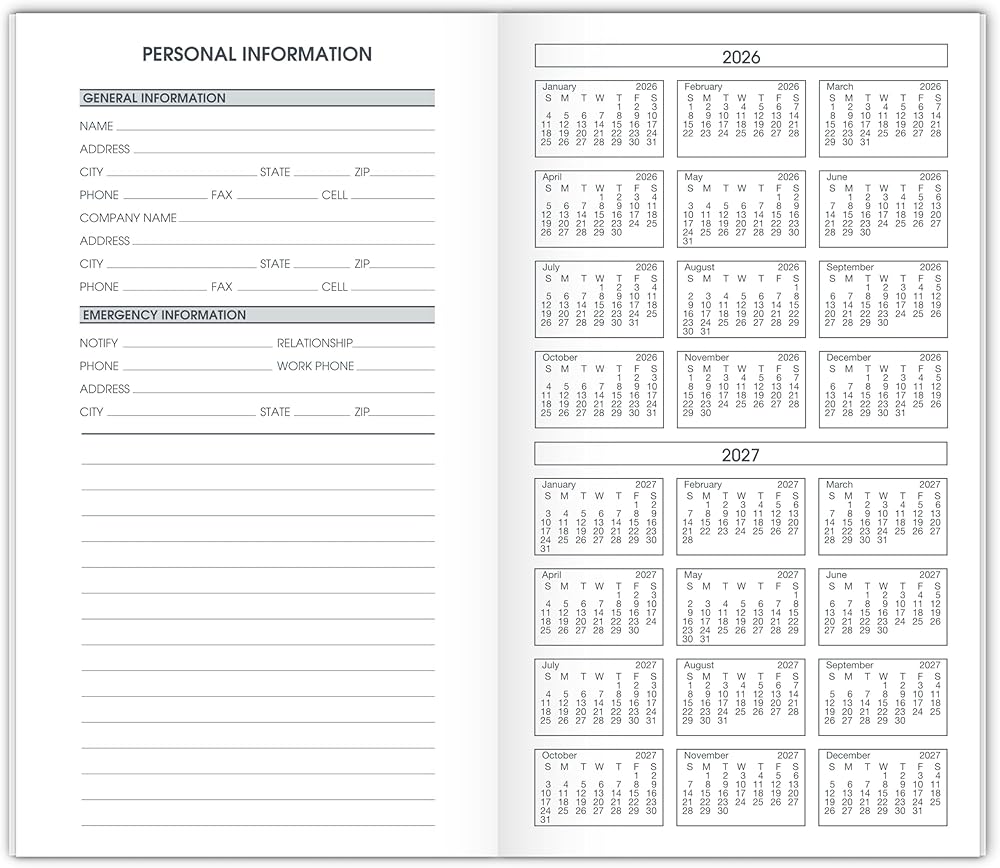 SPECIAL FEATURES – Expand your organizational skills with special pages. Includes 2-year reference calendar, contacts pages, personal information and notes pages.