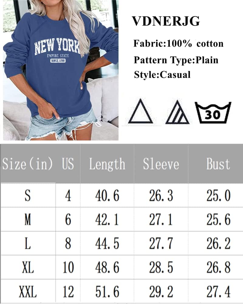 المزايا: سويت شيرت أساسي كاجوال، بلوفر برقبة دائرية وأكمام طويلة، ولاية نيويورك الإمبراطورية منذ طباعة حروف 1788، قمصان ثقيلة فضفاضة غير رسمية، تظهر شبابك وجمالك.