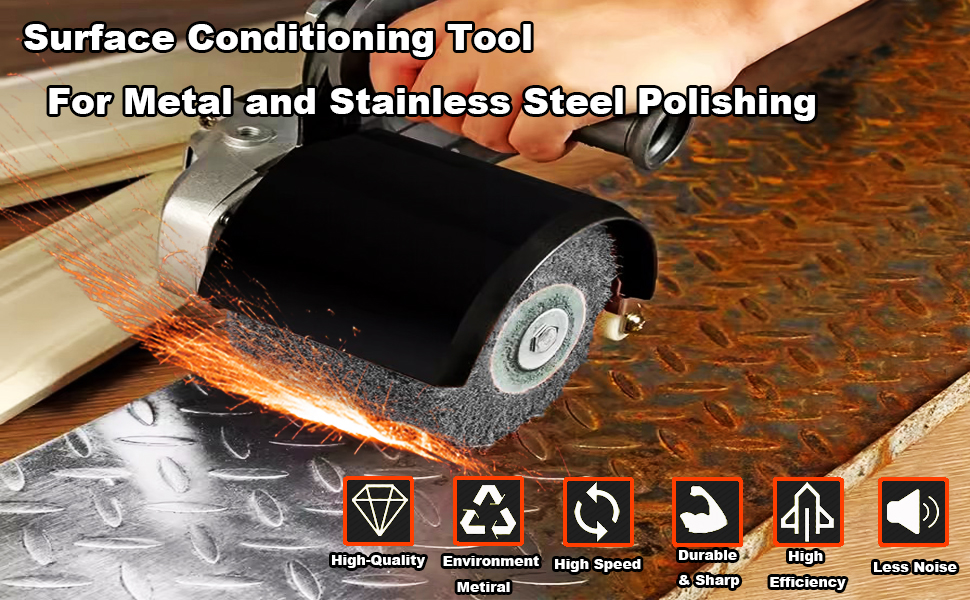 استخدام واسع - يمكن لعجلة سلك المطحنة تلميع المعادن مثل الفولاذ والفولاذ المقاوم للصدأ والألومنيوم ومنتجات النحاس والبلاستيك والألياف والخشب والحجر والأسطح الخرسانية، إلخ.