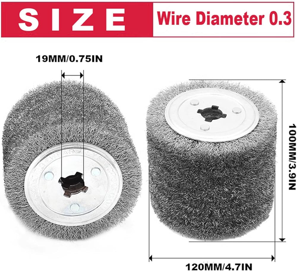 الحجم- فرشاة سلكية من الفولاذ المقاوم للصدأ بقطر 120 مم، 120 × 100 × 19 مم. قطر السلك: 0.3 ملم