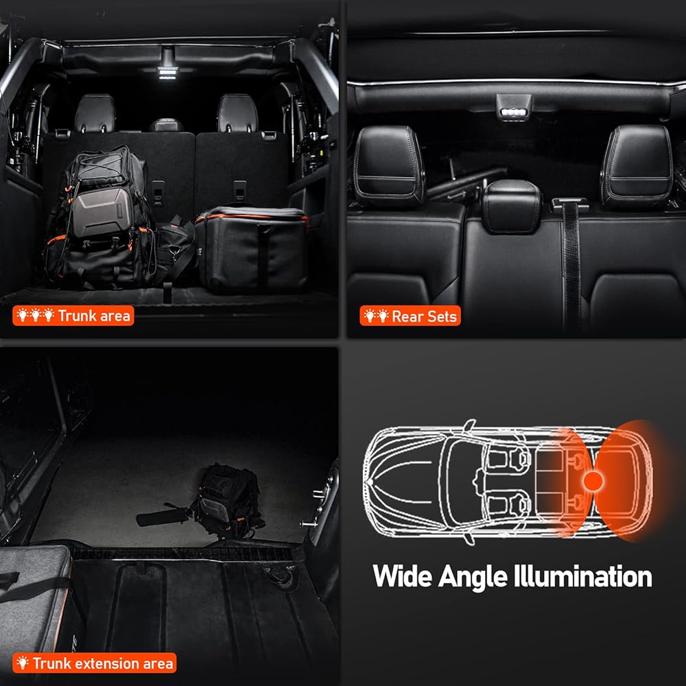 🚗إضاءة زاوية واسعة: يغطي ضوء القراءة الخاص بنا كل شيء بدءًا من المقاعد الأمامية إلى صندوق السيارة، مما يوفر إضاءة ساطعة وزيادة الرؤية، والقراءة / كتب المظهر / الماكياج / العثور على شيء ما / الأطفال الذين يلعبون بالألعاب أكثر ملاءمة.