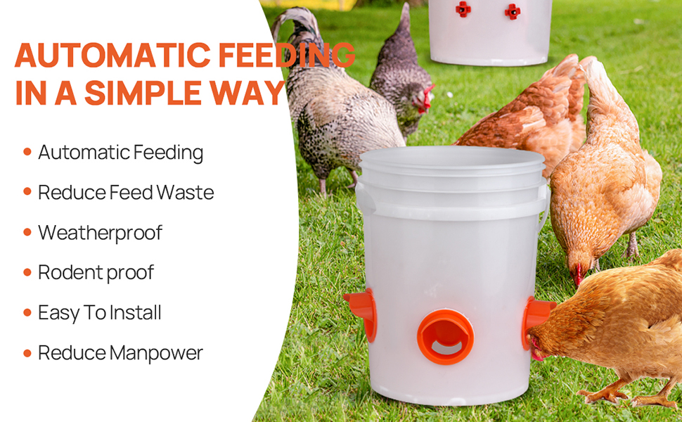 🐔【تقليل نفايات التغذية】: تتميز مغذيات الدجاج التي لا تحتوي على نفايات بتصميم تلقائي يغذي بالجاذبية مما يسمح للتغذية الثابتة بأن تكون قابلة للتطبيق وتقلل من نفايات العلف والانسكاب والفوضى لتوفير تكاليف التغذية مقارنة بوحدة التغذية التقليدية.
