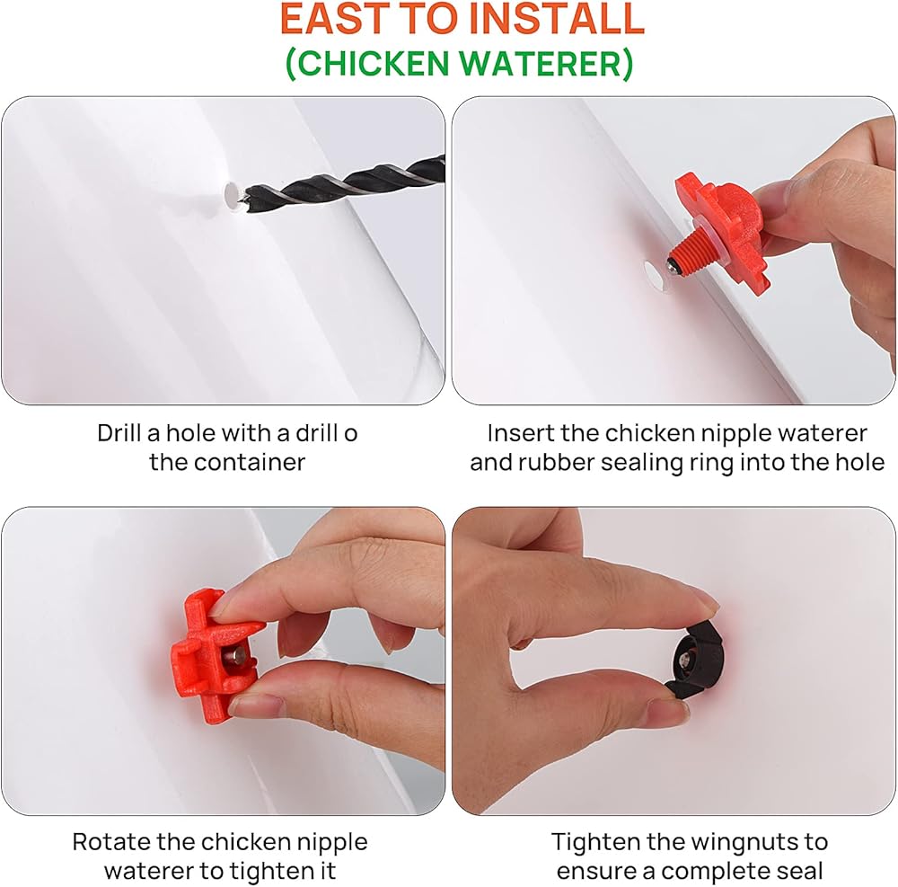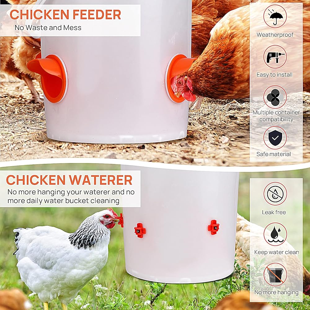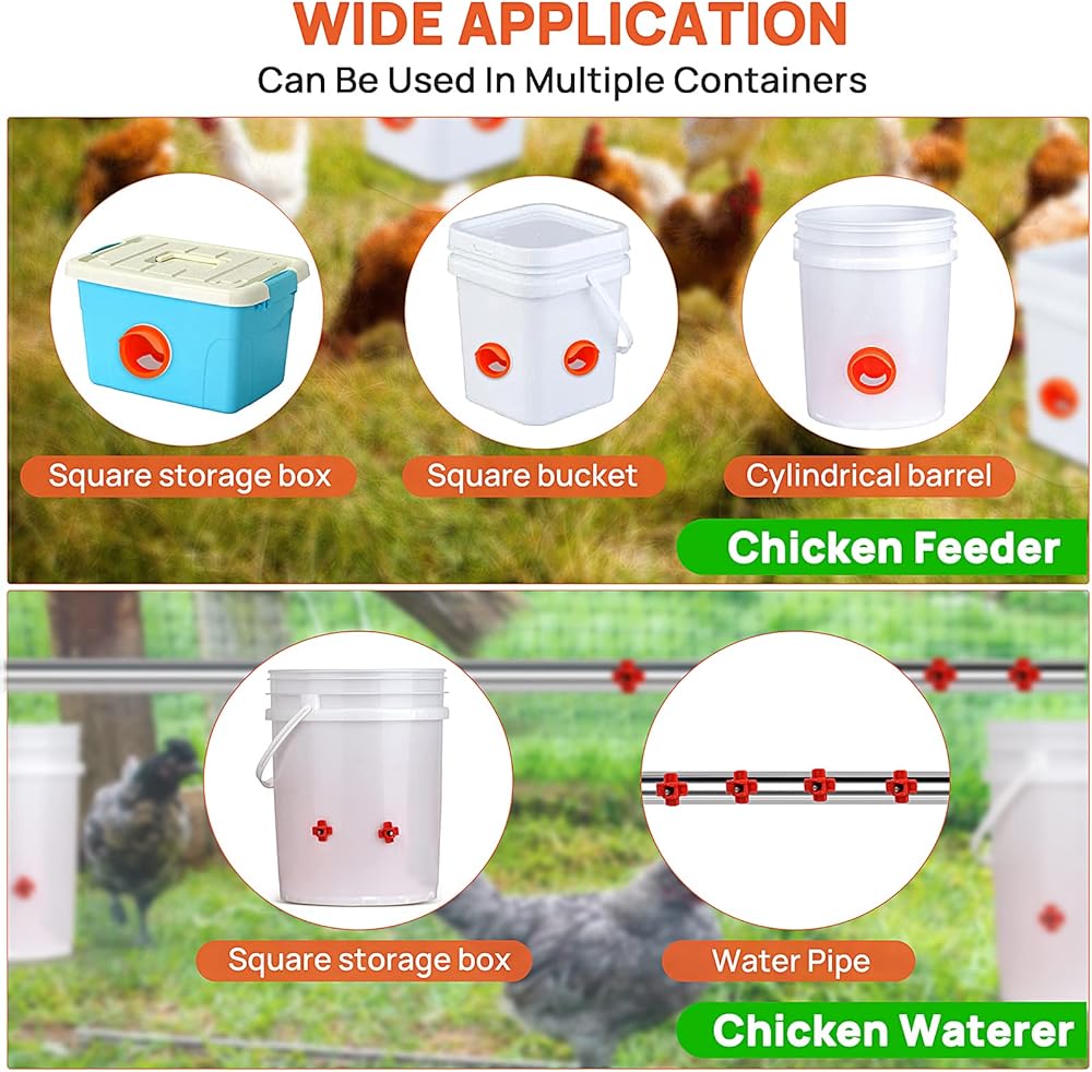 🐔【حوّل حاويتك إلى وحدة تغذية أو سقاية】: يمكن استخدام وحدة تغذية الدجاج وسقي الدجاج في الدلاء والصناديق والبراميل والصناديق. يمكنك دائمًا إنشاء جهاز تغذية الدجاج الأوتوماتيكي وسقي الدجاج بسهولة الرجوع إلى تعليماتنا.