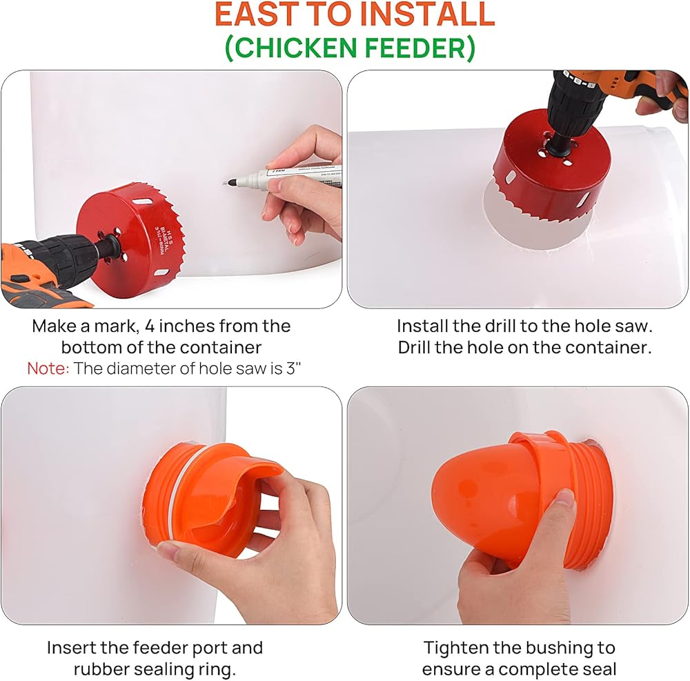 🐔【سهلة التركيب】: تأتي مع منشار ثقب مقاس 3.15 بوصة/80 مم، قم بتثبيته في المثقاب، وقم بتثبيت وحدة تغذية الدواجن في دقائق قليلة فقط. يمكن تعديل تركيب ارتفاع المنفذ وفقًا لأنواع مختلفة من الدواجن مثل البانتام. الدجاج والبط وما إلى ذلك من سوء التغذية والفوضى لتوفير تكاليف التغذية مقارنة بوحدة التغذية التقليدية.