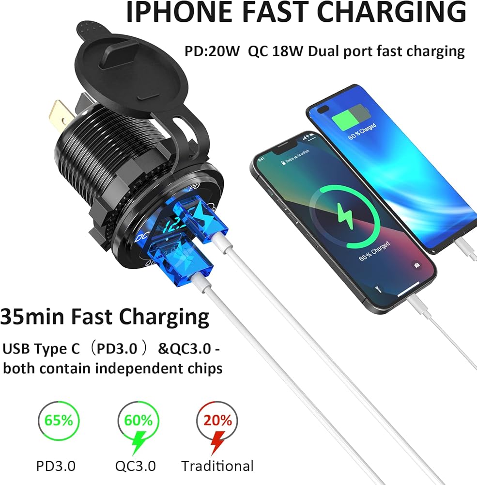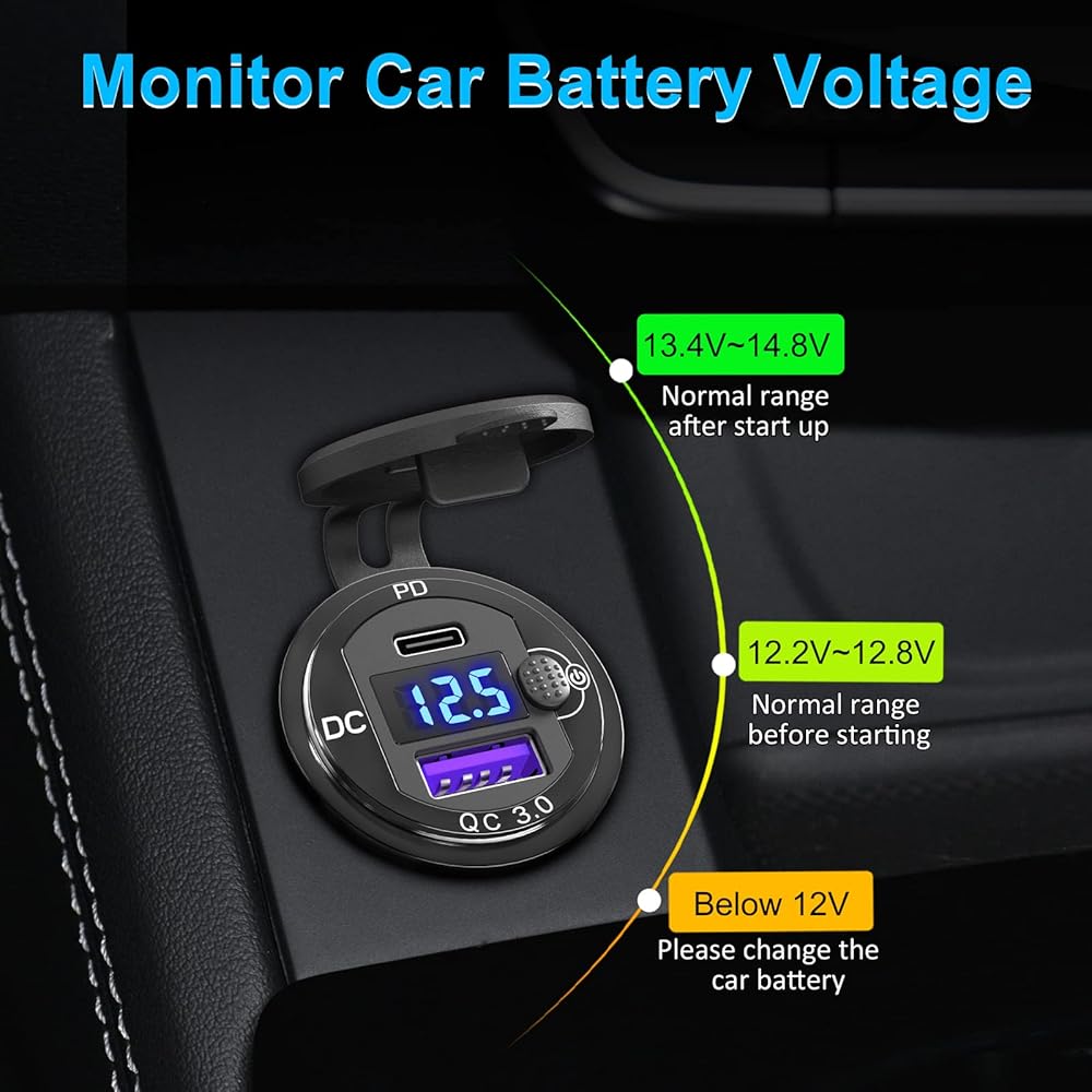 💡[آمن وموثوق]: نطاق الجهد لمقبس USB هو 12 فولت - 24 فولت. لقد اجتاز رقابة صارمة على الجودة ويحتوي على مصهر 10 أمبير لمنع التيار الزائد والحمل الزائد وقصر الدائرة. ستتوقف الشريحة تلقائيًا عن الشحن عندما تكون مشحونة بالكامل. استرداد الأموال لمدة 60 يومًا واستبدال مجاني لمدة 5 سنوات.