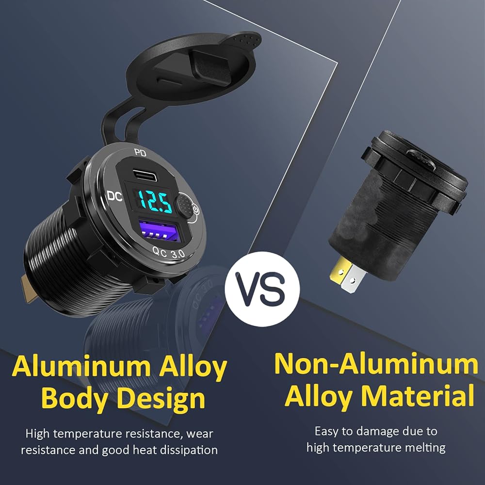 👍[جسم من سبائك الألومنيوم]: شاحن USB 12 فولت الخاص بنا مصنوع من مادة سبائك الألومنيوم، مما يجعله مقاومًا للخدش، ومقاومًا للاهتراء، وجيدًا في تبديد الحرارة، مما يوفر تجربة شحن أكثر أمانًا من شواحن السيارات البلاستيكية التقليدية.
