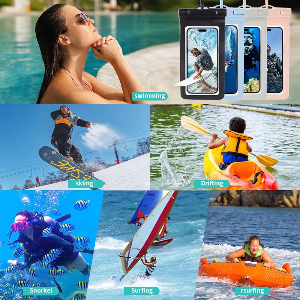 • 【IPX8 Waterproof Protection】Provides full protection for your phone up to 100 feet/30 meters underwater. Perfect for activities like swimming, beach, fishing, tubing, snorkeling, diving, kayaking, shower, skiing, etc. Comes with a neck strap that is adjustable for easy carrying and prevents loss