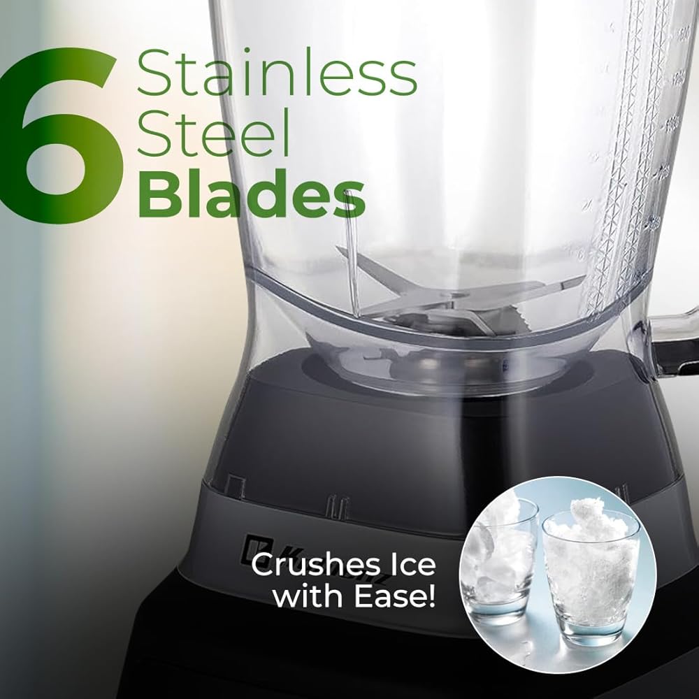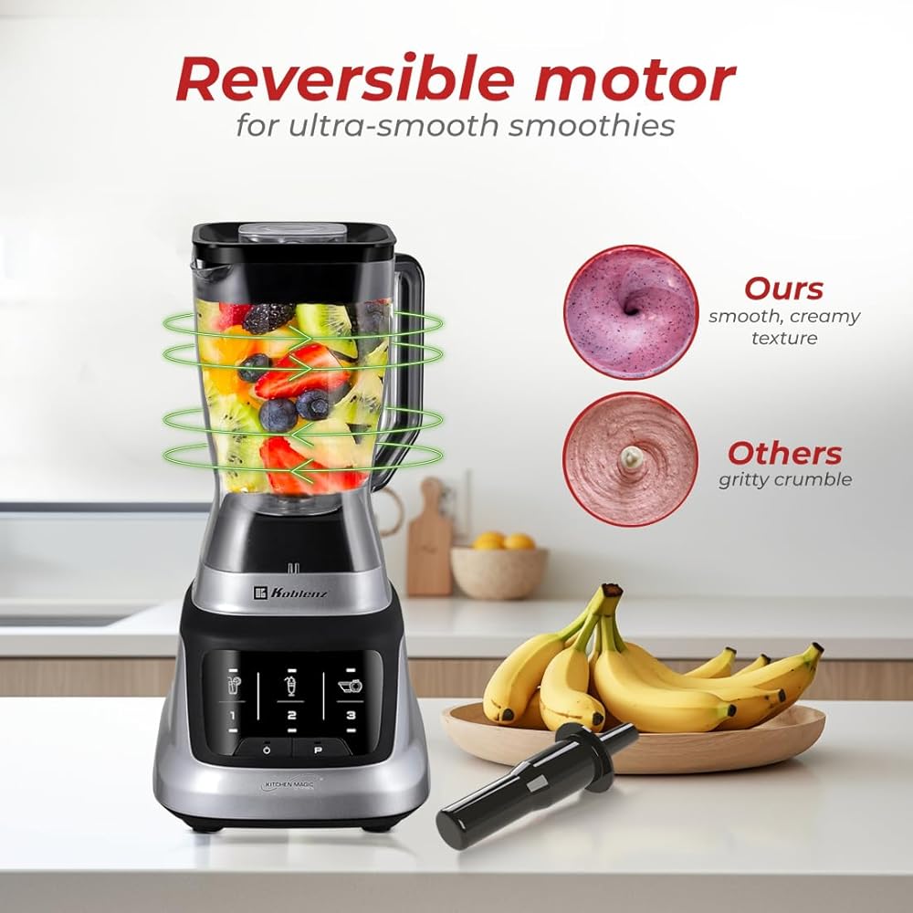 Powerful Smoothie Blender: With a 1400-watt motor, speed knob, 6 blending options, and 6 reversible blades, the Koblenz Professional Blender is ideal for preparing smoothies, juices, shakes, sauces, and other drinks effortlessly.