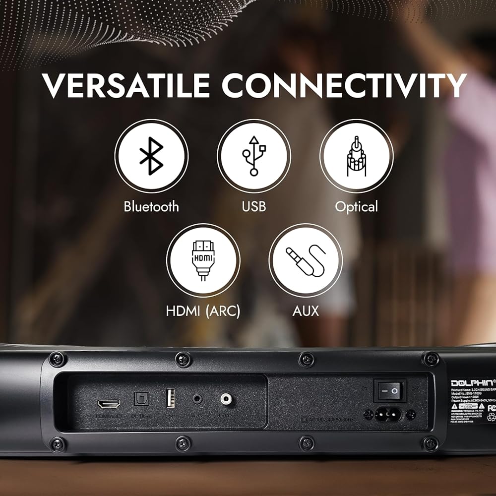 اتصال متعدد الاستخدامات: يمكنك الاتصال بسهولة باستخدام تقنية Bluetooth أو USB أو Optical أو HDMI (ARC) أو AUX، مما يضمن التوافق مع الأجهزة المختلفة.
