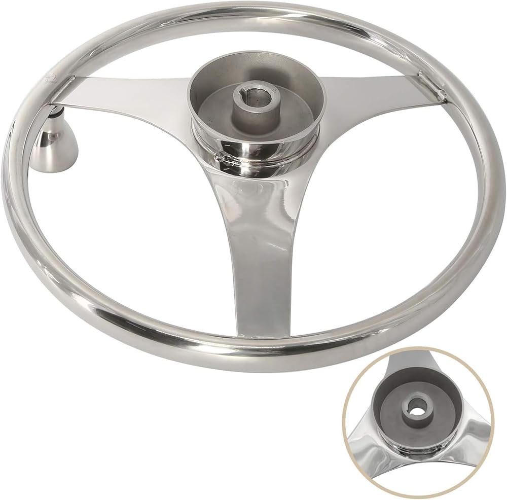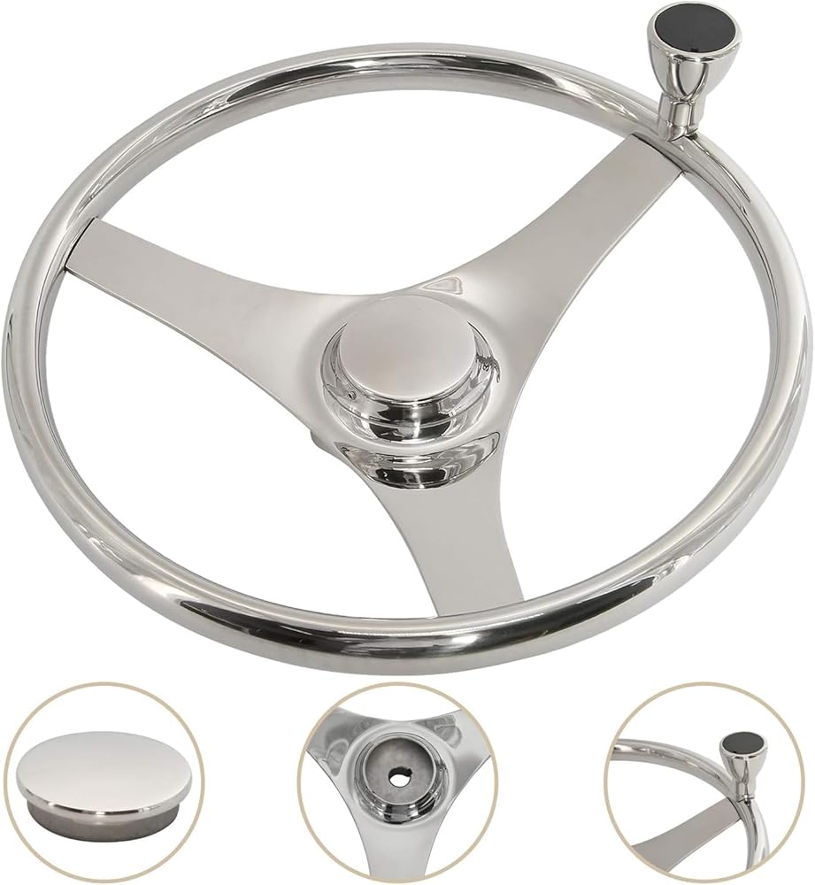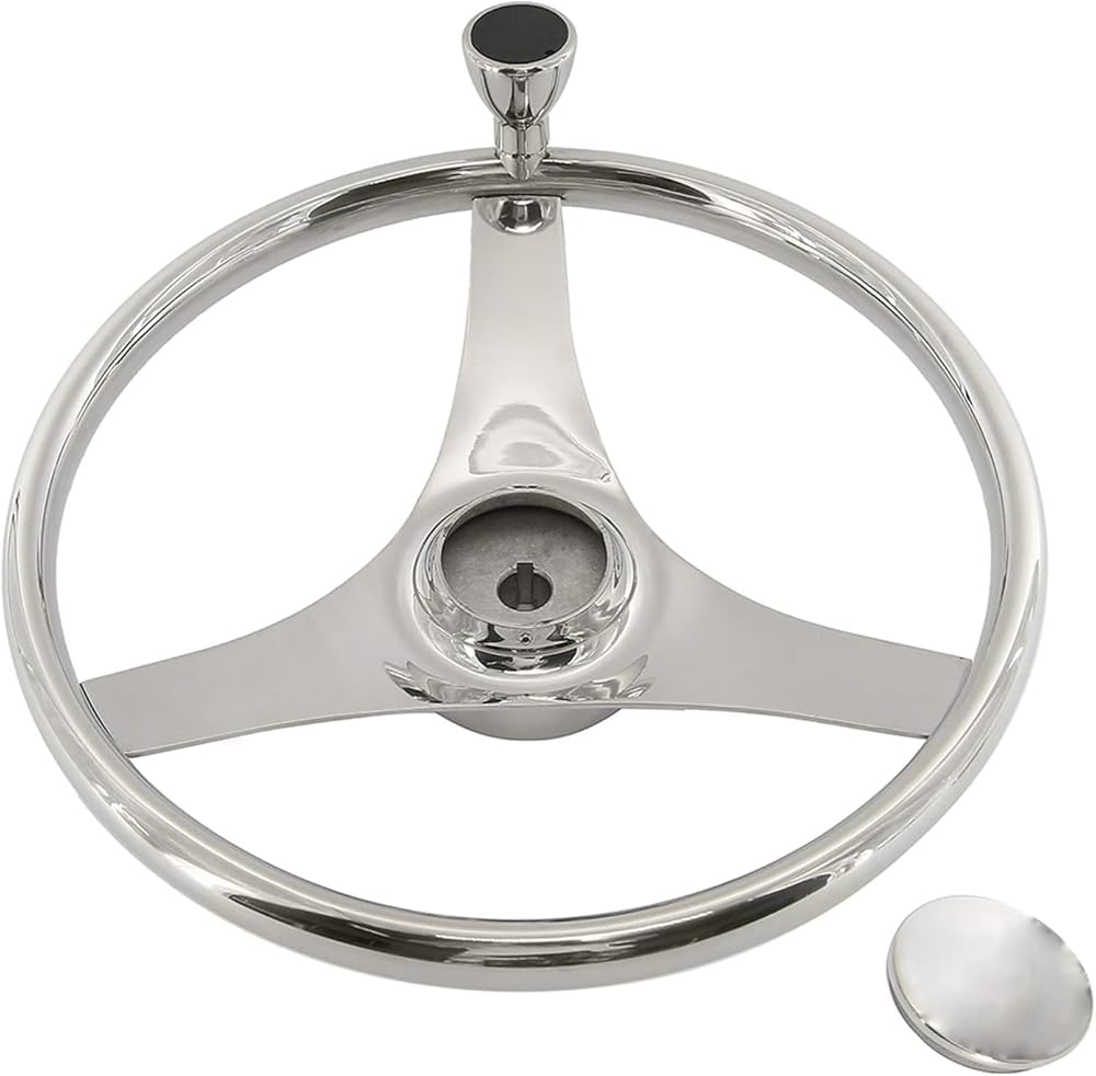 YaeMarine Stainless Steel Marine Boat Steering Wheel 13-1/2" Dia 3 Spoke Sports Steering Wheel with Control Knob and Cap