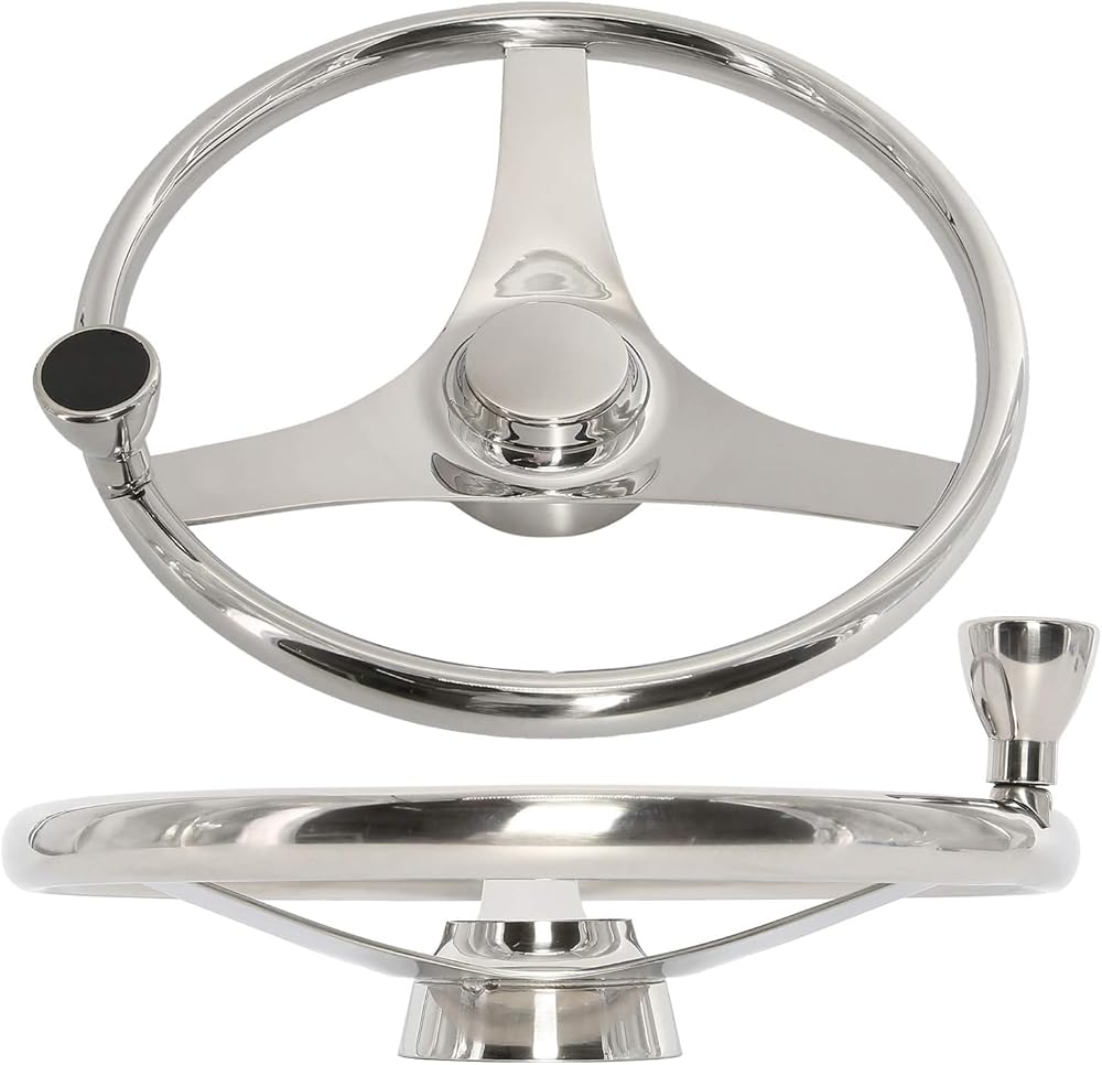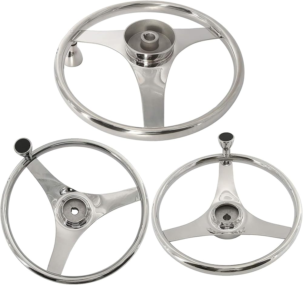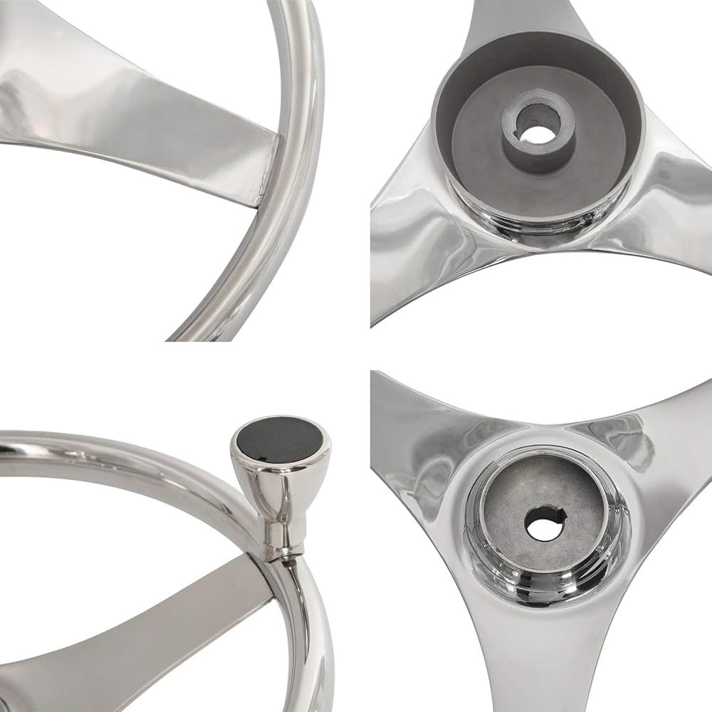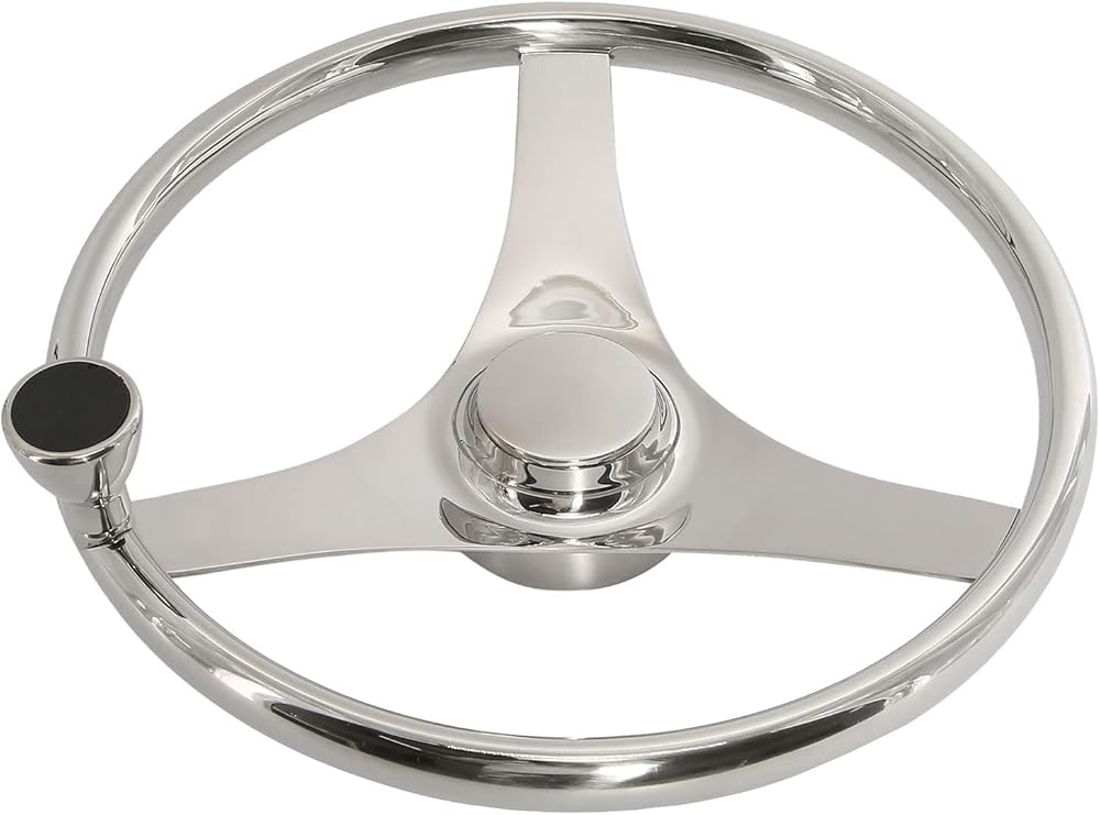 YaeMarine Stainless Steel Marine Boat Steering Wheel 13-1/2" Dia 3 Spoke Sports Steering Wheel with Control Knob and Cap
