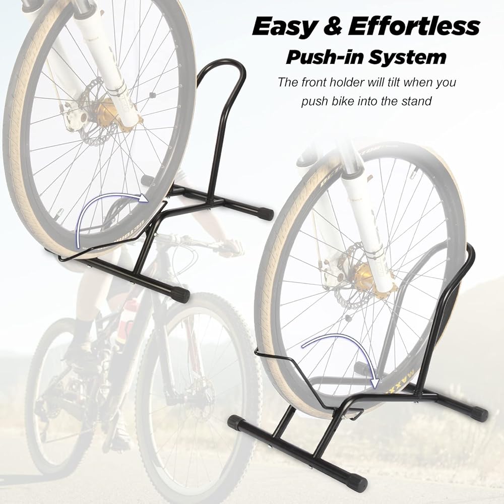 【تصميم بسيط للدفع】نظام دفع سريع وسهل. على عكس رفوف الدراجات الأخرى، تحتاج إلى رفع الدراجة ووضعها فيها. يميل حامل الحامل الخاص بنا عند دفع الدراجة إلى الحامل.