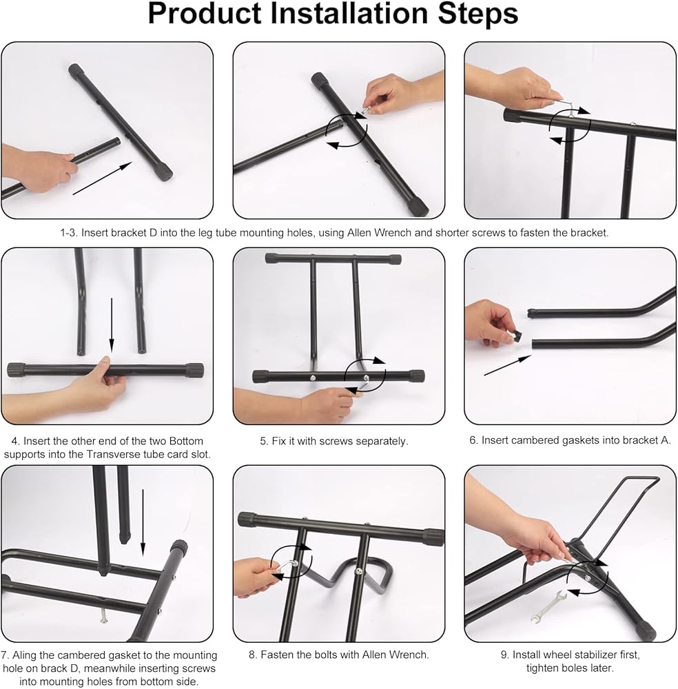 【سهلة التركيب】اتبع الخطوات الموجودة في دليل التعليمات، يمكنك بسهولة إنهاء التجميع في غضون دقائق. قوى النقاط الثلاث تجعل الدراجة ثابتة بنسبة 100%. ما عليك سوى الانزلاق بالعجلة الأمامية أو الخلفية للدراجة، ولن تلمس دوار القرص ودوار القرص، ولا تحتوي على خدوش على إطارات الدراجة، ودوارات الأقراص، والأشرطة، وما إلى ذلك.