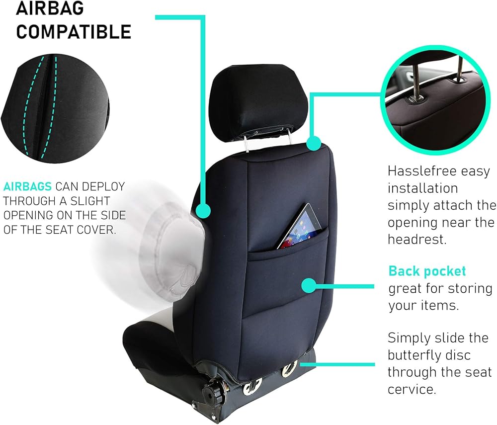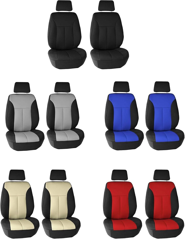 FH Group got you covered! Our premium neoprene car seat covers not only provide the best protection for your car's upholstery against any type of mess but they also enhance the looks of your car's interior. No need to worry anymore about spills, stains, mud, or anything damaging your original car seats because this car seat protector got your back. Every car seat cover we make is built with high-quality, durable materials that will protect your car's upholstery at all times. We offer automotive seat covers in numerous fabrics, colors, and designs, so you can easily find the seat cover for cars that fits your style the most. We have car seat covers for women, for men and for everyone. Our auto seat covers are compatible with most sedans, SUVs, and vans' front seats thanks to the universal low back seat cover design that delivers the snug fit you're looking for, only if the front seats' headrest is removable. Also, because safety is one of our main goals, this front set of cover for car seats is airbag compatible (officially tested!). We understand messes happen, that's why these waterproof seat covers for cars are convenient for any type of driver. FH Group car seat covers are a great car interior accessory for your vehicle. We have it all: car seat covers for SUV, car seat covers for sedan, car seat covers for vans, you name it!.