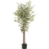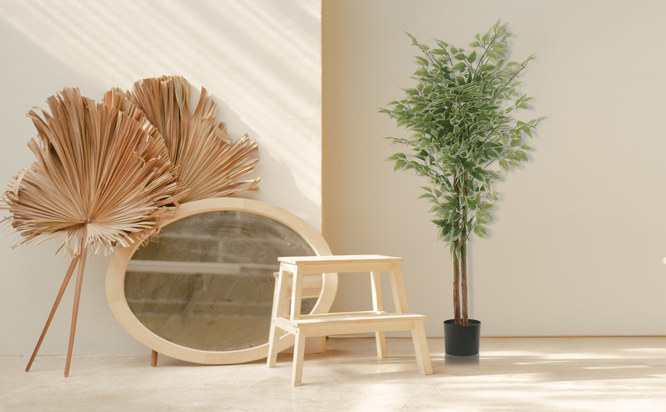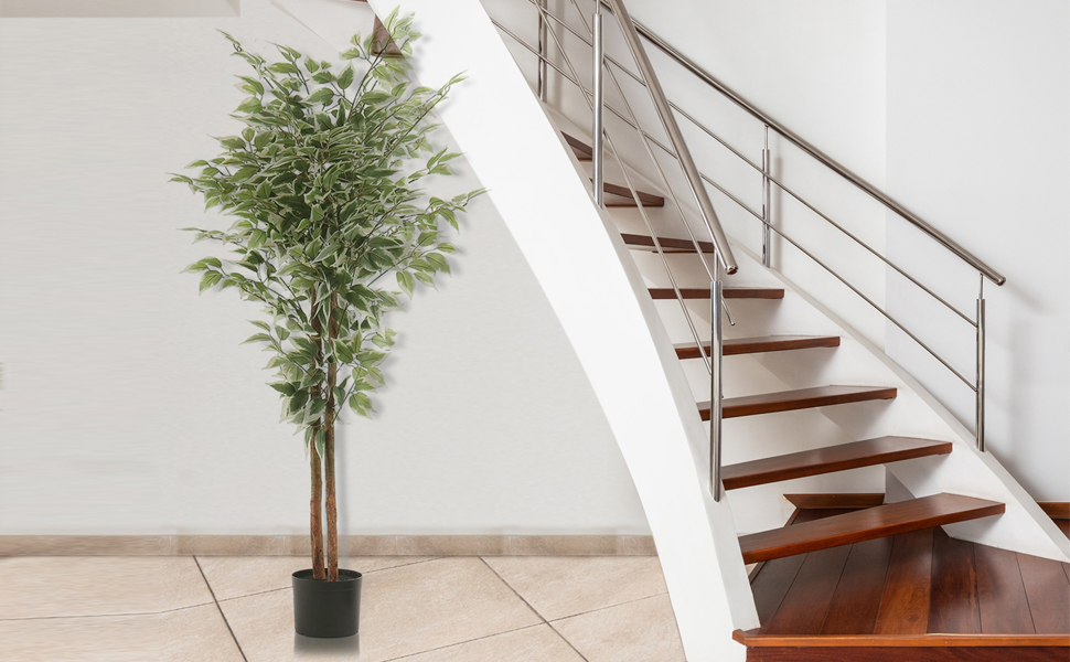 ELEVATE YOUR DÉCOR:Add a touch of natural beauty to your home decor with our lifelike 5ft artificial Ficus tree, complete with 2 realistic wooden trunks and lush PVC white-edge Ficus leaves with vibrant stripes. It's ideal way to elevate your space.